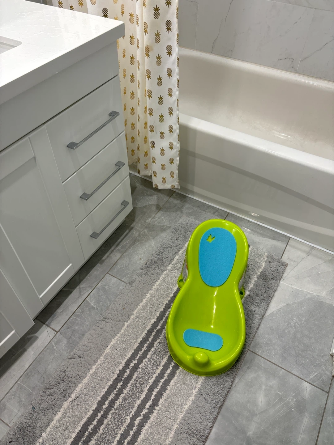 Selling a Summer Infant baby bather in great condition! It's a bright green colour with blue padding. Perfect for newborns and infants to make bath time easier and safer. It provides a comfortable and supportive place for your little one during baths