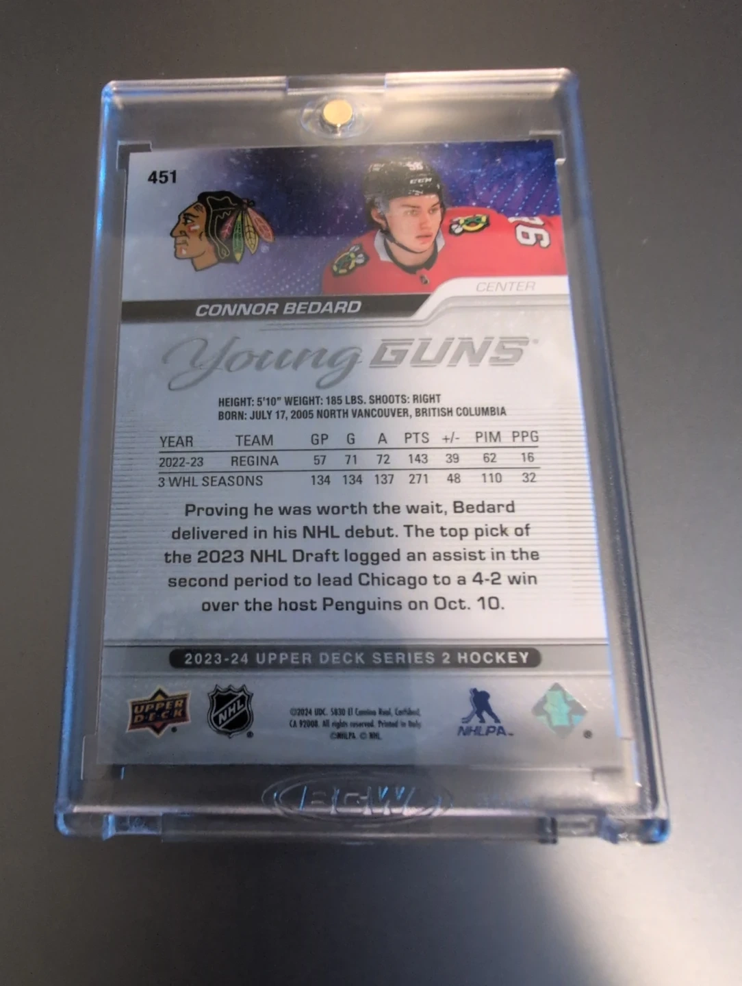 Buy & SellConnor Bedard Young Guns Hockey CardConnor Bedard Young Guns Hockey Card$469Selling a Connor Bedard Young Guns hockey card. It's in mint condition and has been sleeved/cased since pulled.ConditionNewWHERE TO MEETShops at Morgan CrossingView MapSELLERverifiedGarrettMorgan Heights600 reviews2 chats·0 favorites·38 viewsSEND CHAT TO SELLERHi Garrett! I’m interested in your listing.Hi Garrett! I’m interested in your listing.Get the Karrot app to chatSign In to chat