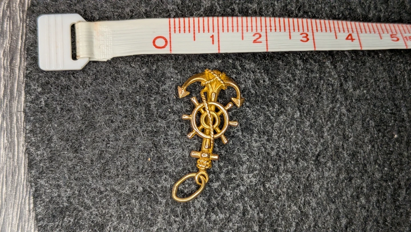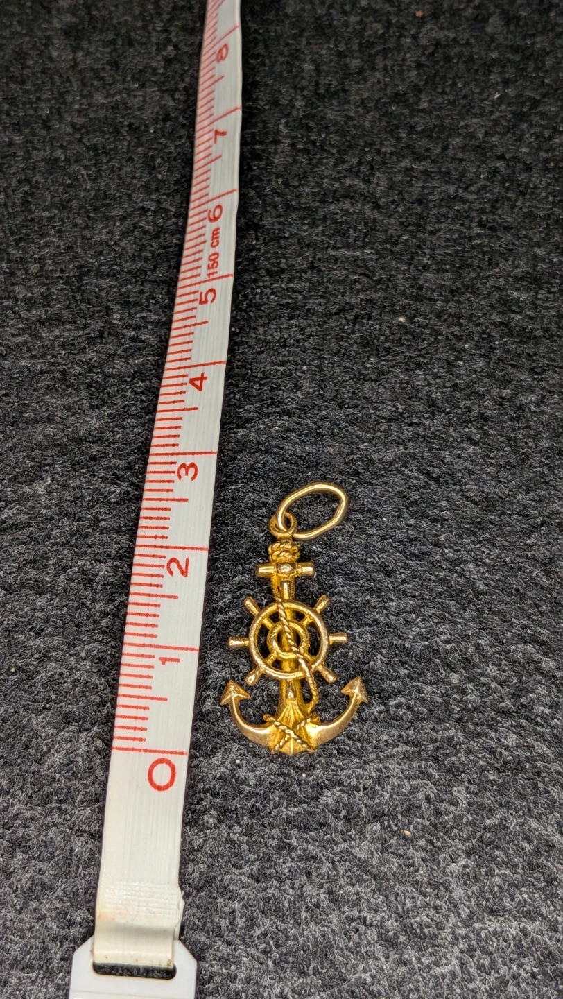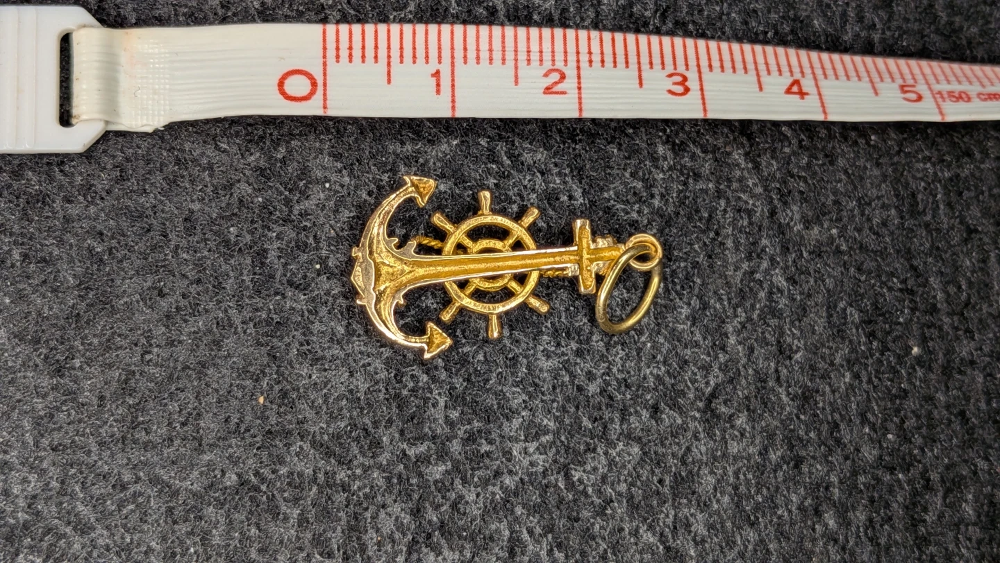 Selling a gold anchor and wheel charm pendant. It's in great condition and would make a lovely addition to any necklace or bracelet! Was tested recently and came in at 16k purity and over 2 grams . Best offer takes it