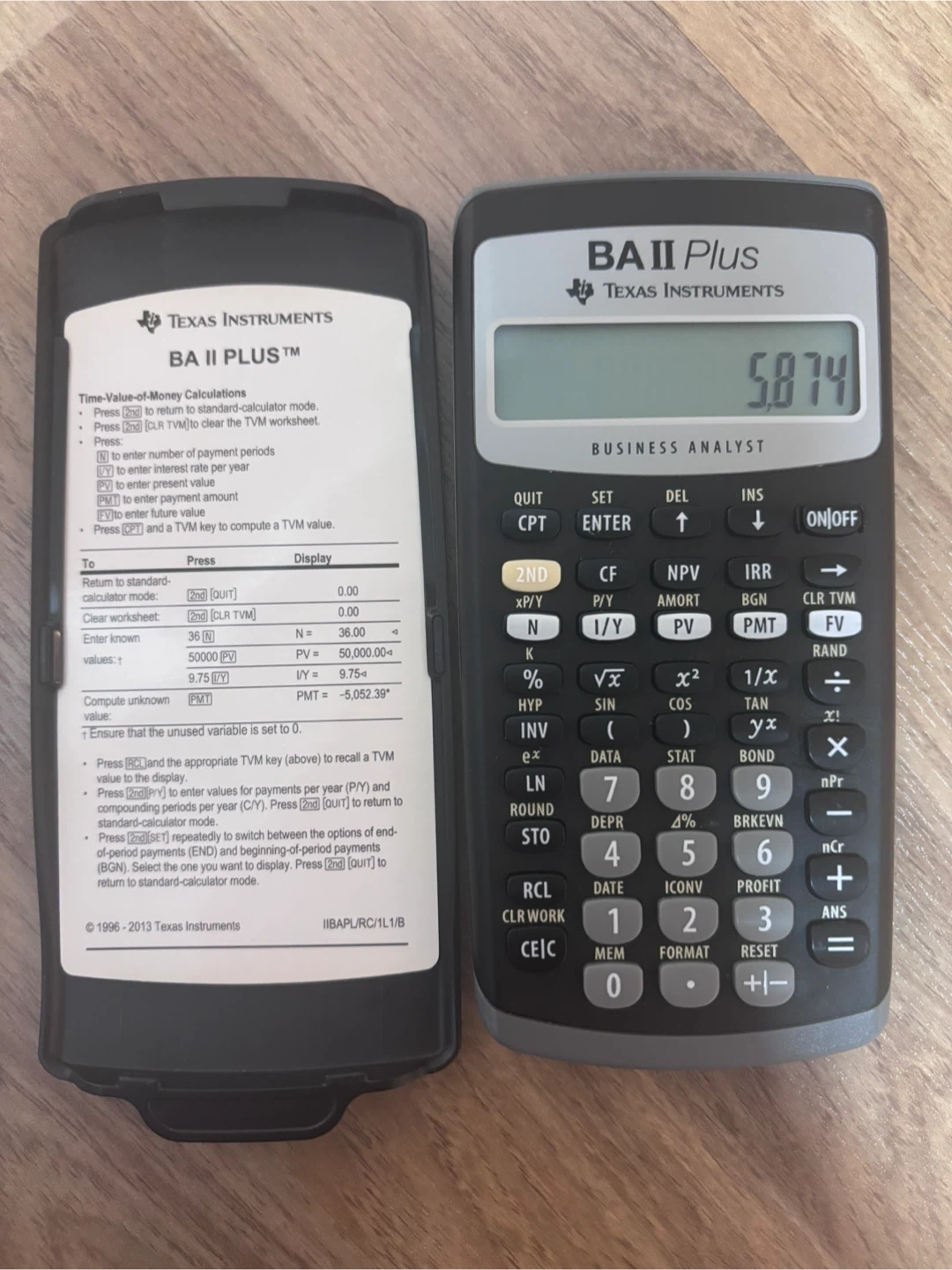 Selling a Texas Instruments BA II Plus calculator. It's in great condition and ready to help you ace your finance exams! This is a business analyst calculator.