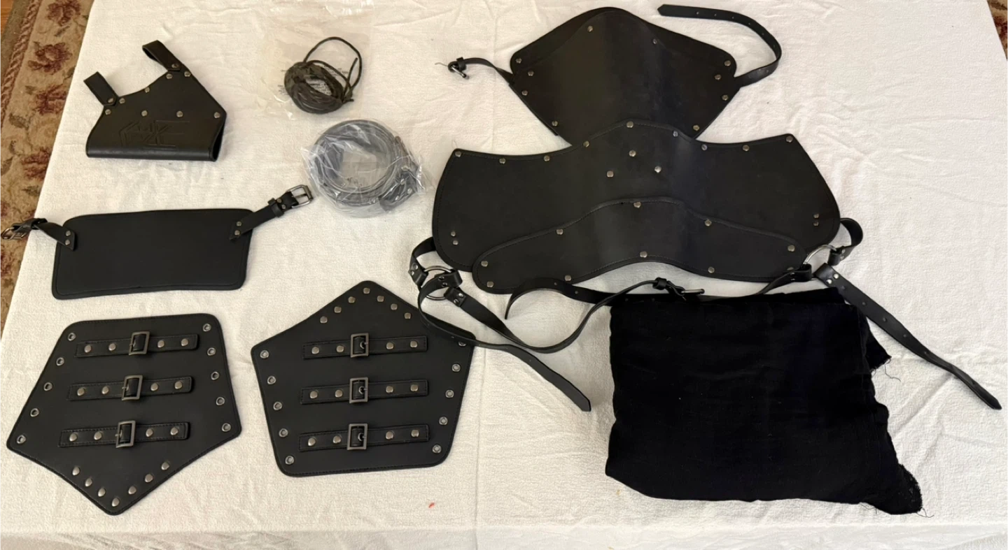 Selling a brand new medieval costume/armour outfit in black! It comes with all the pieces shown in the box, ready for your next event or costume party. The box is included