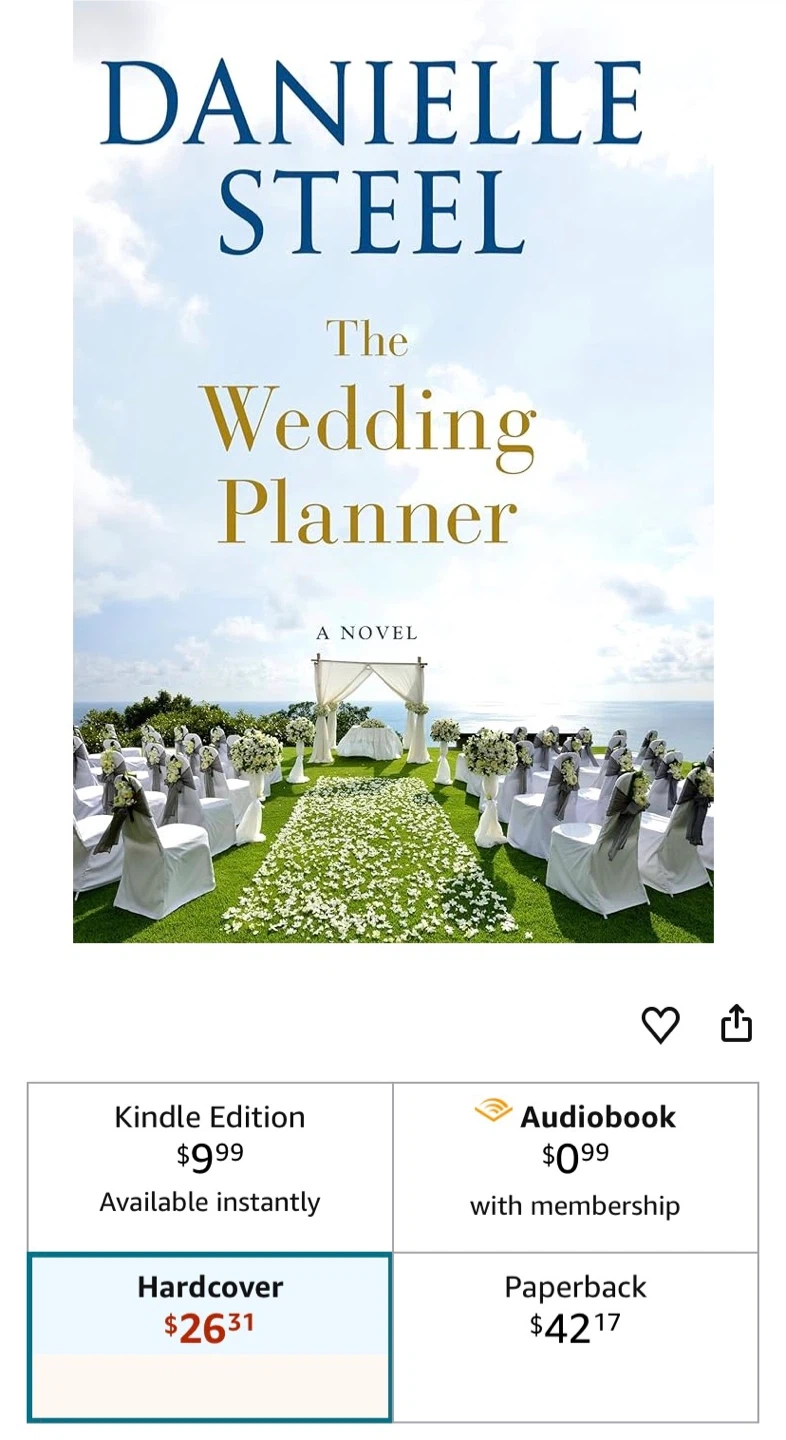 Buy & SellThe Wedding Planner by Danielle SteelThe Wedding Planner by Danielle Steel$10Selling a hardcover copy of 'The Wedding Planner' by Danielle Steel! It's a novel in excellent condition, perfect for anyone who enjoys a good storyConditionLike newWHERE TO MEETCheck LocationView MapSELLERverifiedFrankBriar Hill93685 reviews0 chats·0 favorites·3 viewsSEND CHAT TO SELLERHi Frank! I’m interested in your listing.Hi Frank! I’m interested in your listing.Get the Karrot app to chatSign In to chat