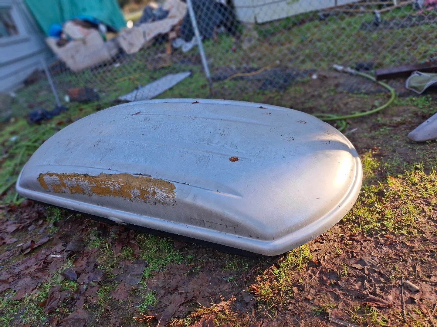 Selling a car top carrier, perfect for extra storage on road trips! It's in used condition, as you can see from the photos, but still works great for hauling your gear