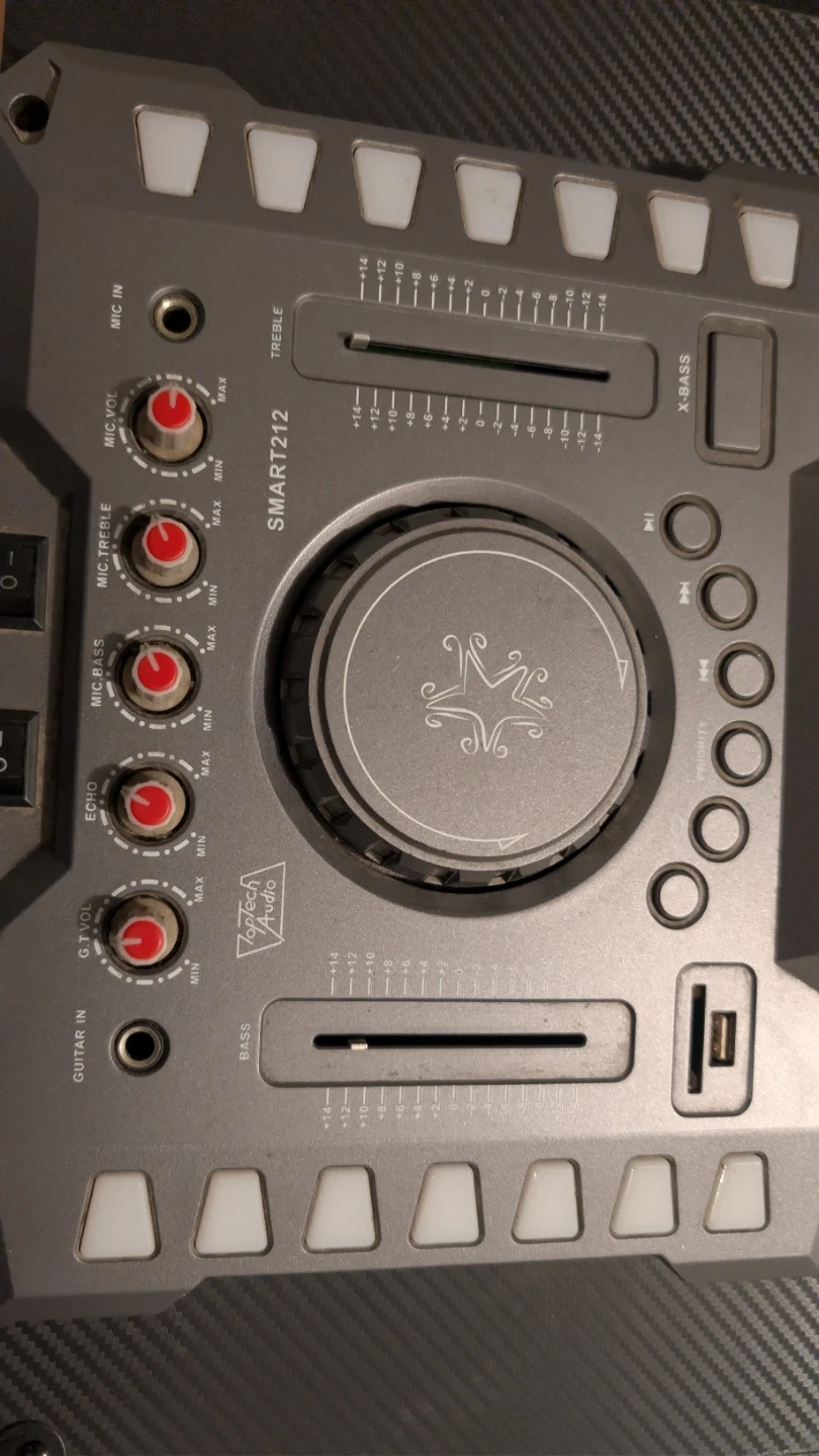 For parts or to fix Selling a Toptech Audio professional speaker, model Smart212. This speaker has a P.M.P.O of 7500W and a 12V7AH battery. It also has an FM antenna and AUX input. Perfect for parties or events!