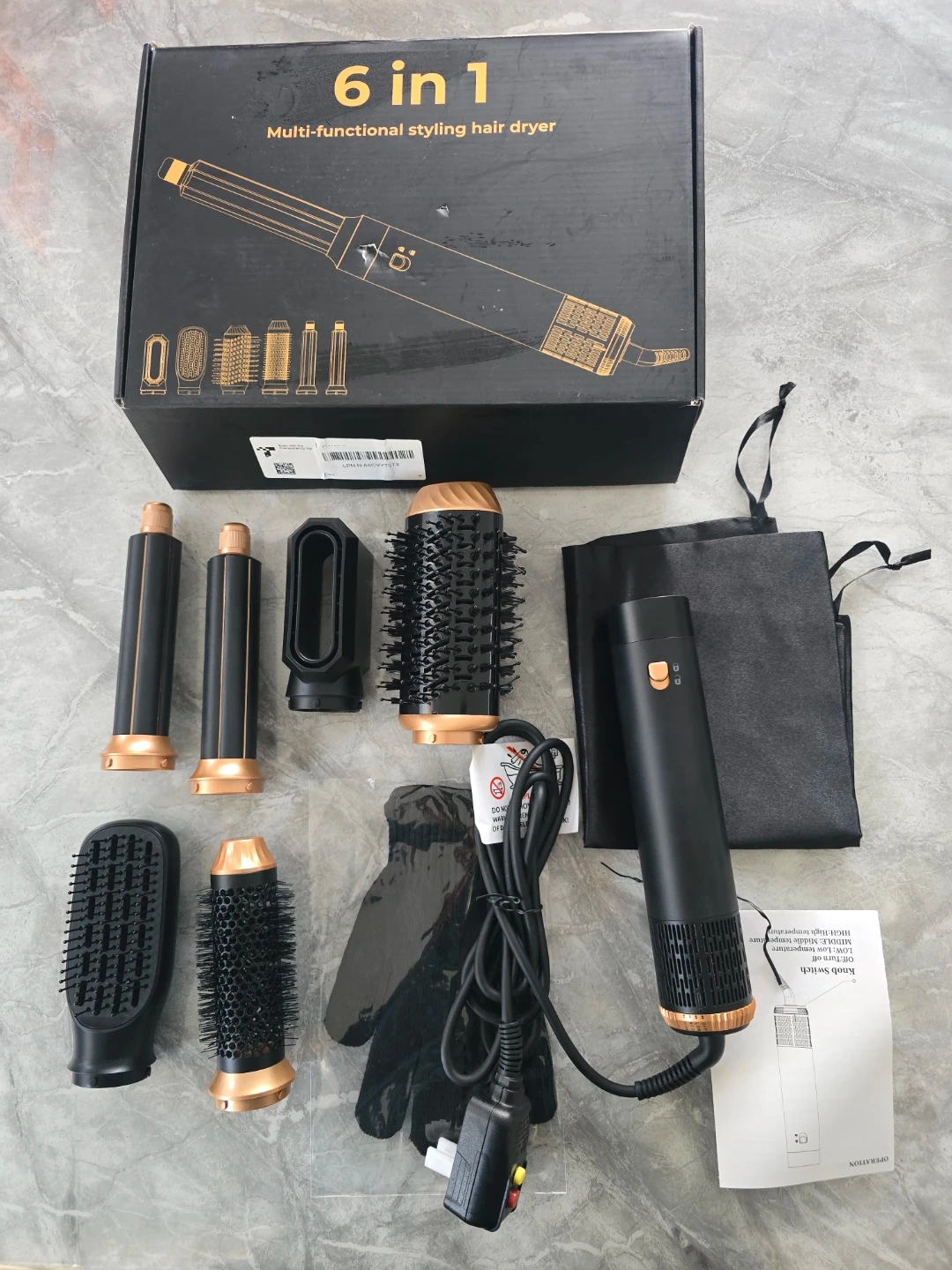 !6 in ONE Blow Dryer Brush, Curling Wand Hair Styling Tools Set, Ionic Hot Air Hair Dryer, Massage Oval Hair Dryer, Left&Right Hair Curlers 100-120V