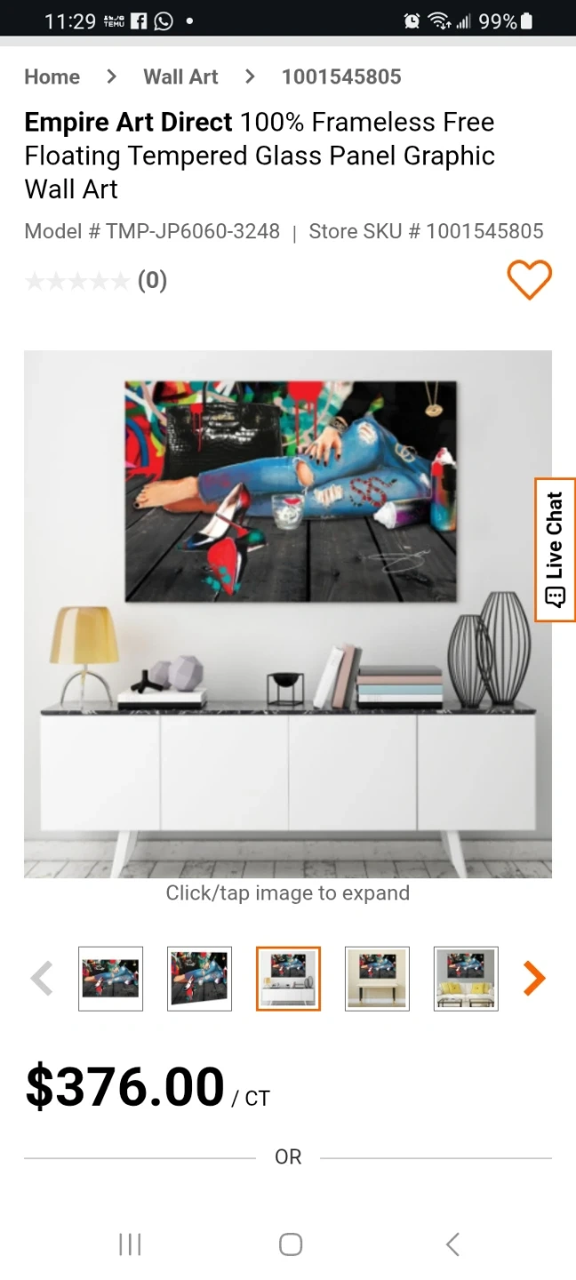 Selling Empire Art Direct 100% Frameless Free Floating Tempered Glass Panel Graphic Wall Art Originally bought for $376.00