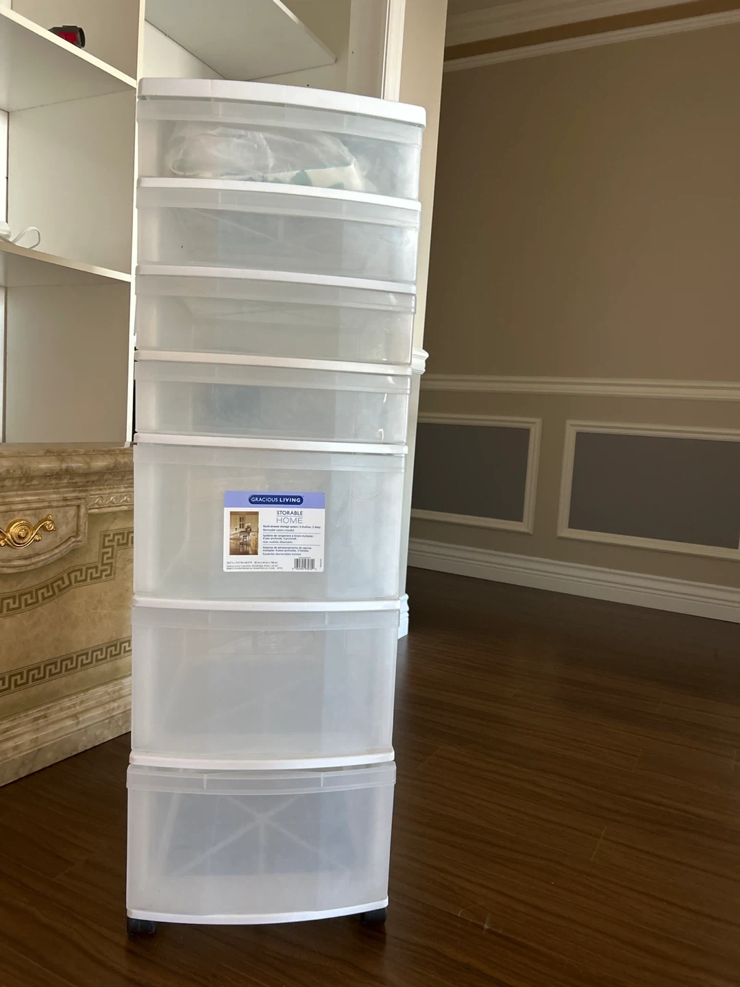Selling a Gracious Living 6-drawer storage tower. It's perfect for organizing any room in your home! The tower is on wheels, making it easy to move around. It's a great way to keep things tidy and accessible