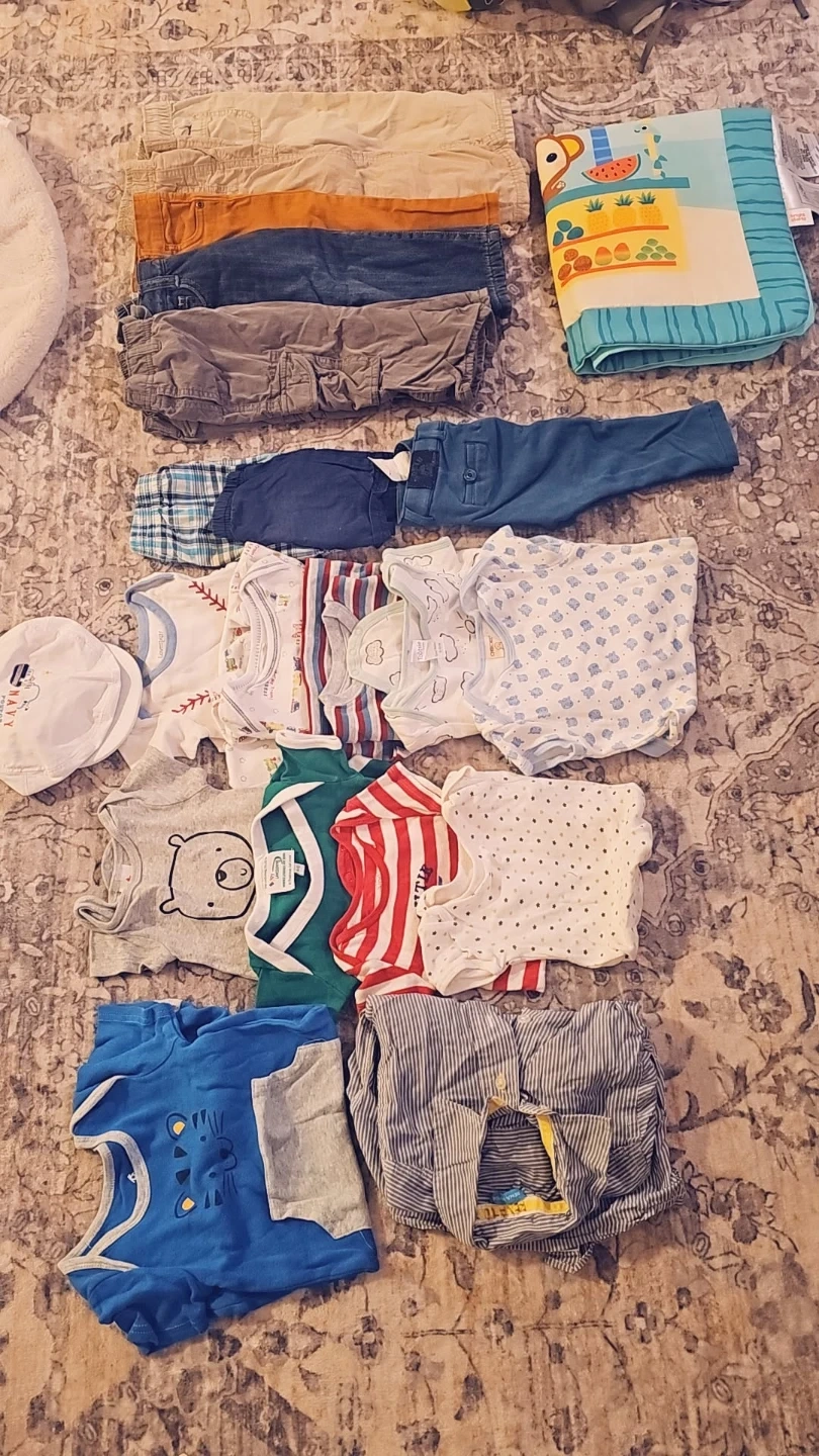 A bundle of baby clothes in good condition! Includes a variety of bodysuits, pants, shorts, bumper, mat and other items for your little one