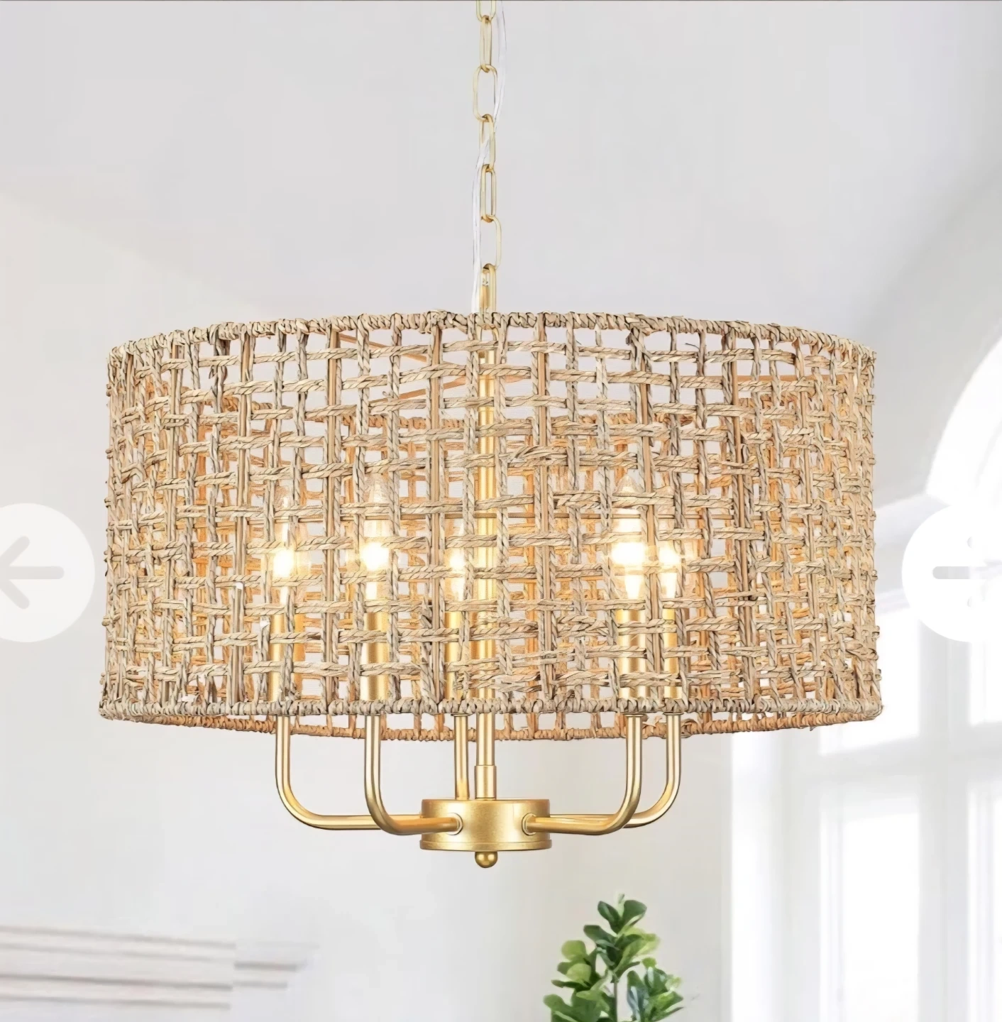 Handwoven rattan chandelier (New in box)