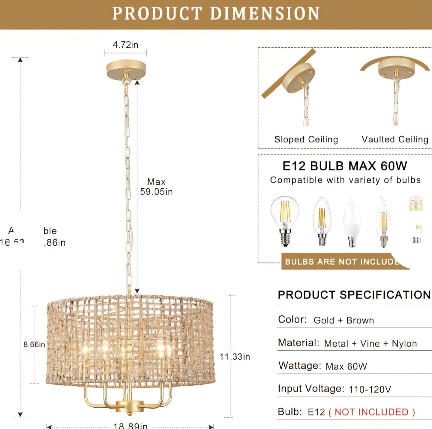 Handwoven rattan chandelier (New in box)