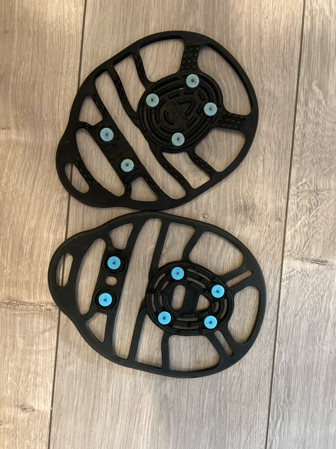 Giving away a pair of ice grips for shoes to help with winter traction! They're black and feature blue studs for extra grip on icy surfaces