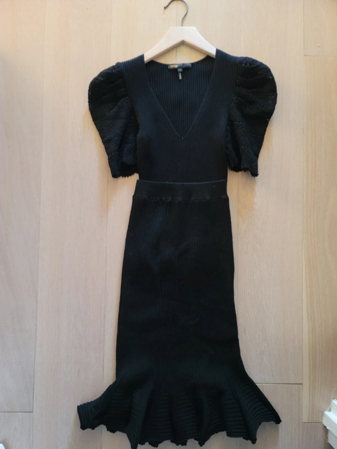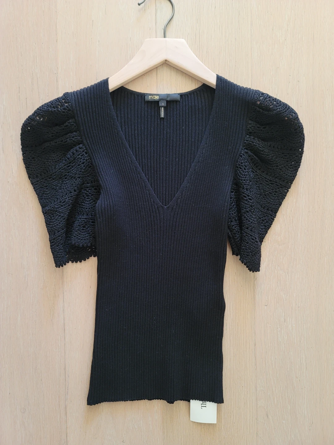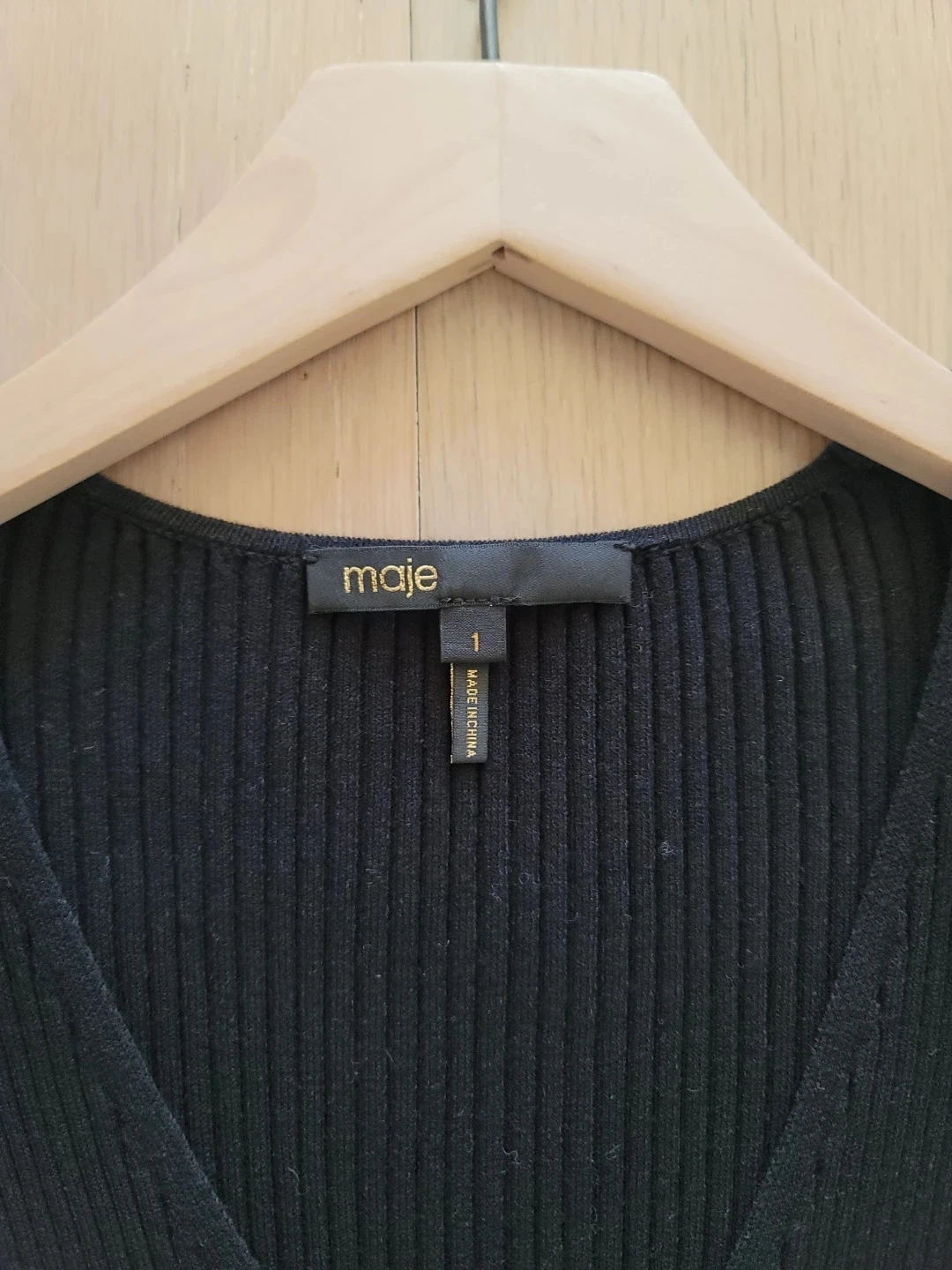 Selling a Maje black ribbed knit top. It features short sleeves with a V-neck. Size 1.