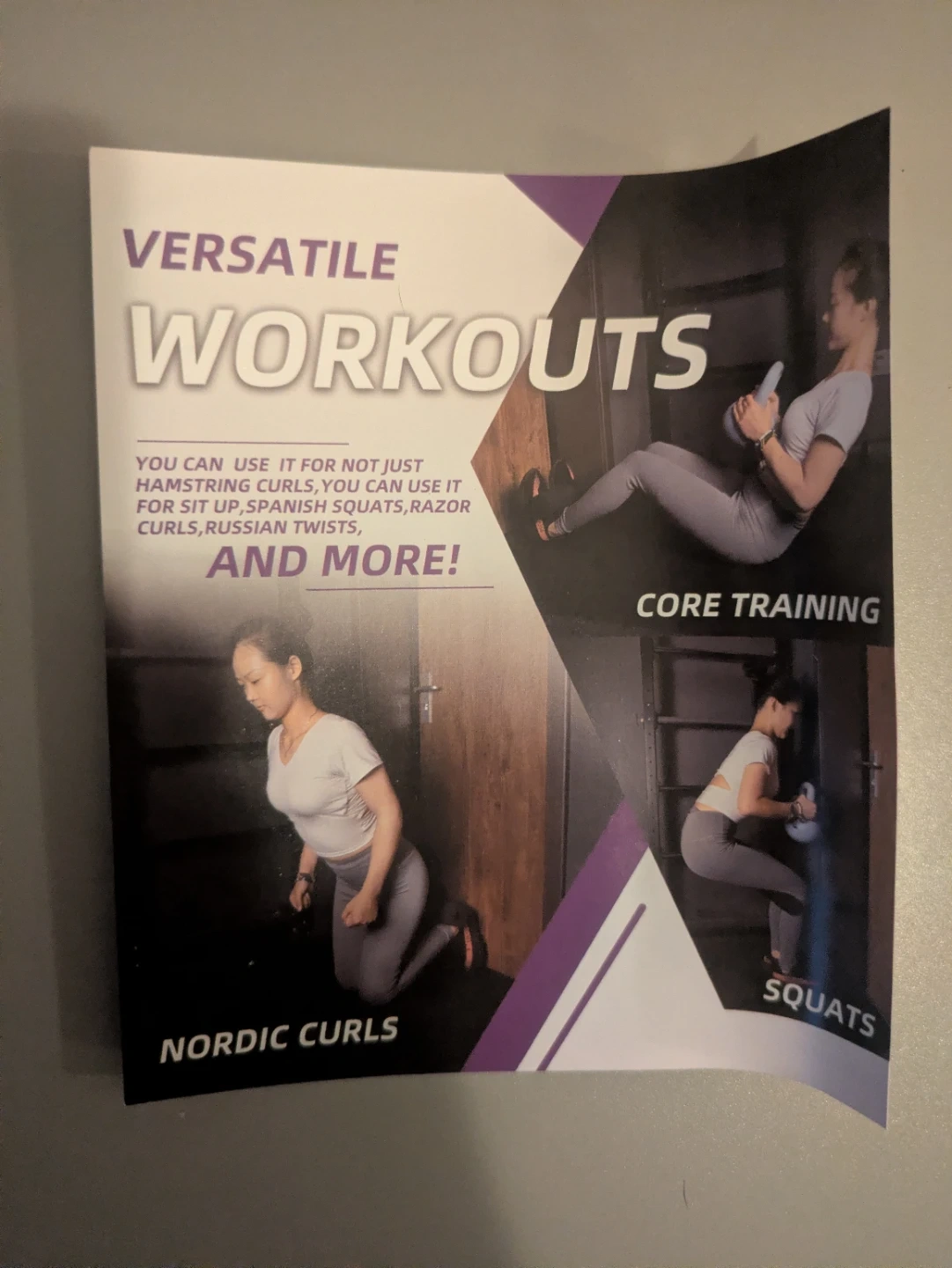 Get ready for versatile workouts with this Nordic curl strap! It's great for hamstring curls, sit-ups, Spanish squats, razor curls, Russian twists, and more. This strap also features a sliding two-metal tri-glide button so you can adjust the length of the strap. It also includes a door anchor to secure it; remember, lock the door!