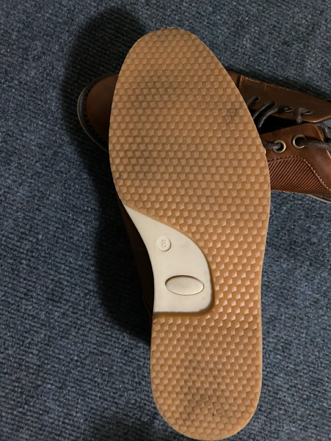 Selling a pair of cognac-coloured dress shoes in US size 8. They're in great shape and ready for a new owner! The shoes feature a PU upper and a balance man-made material.