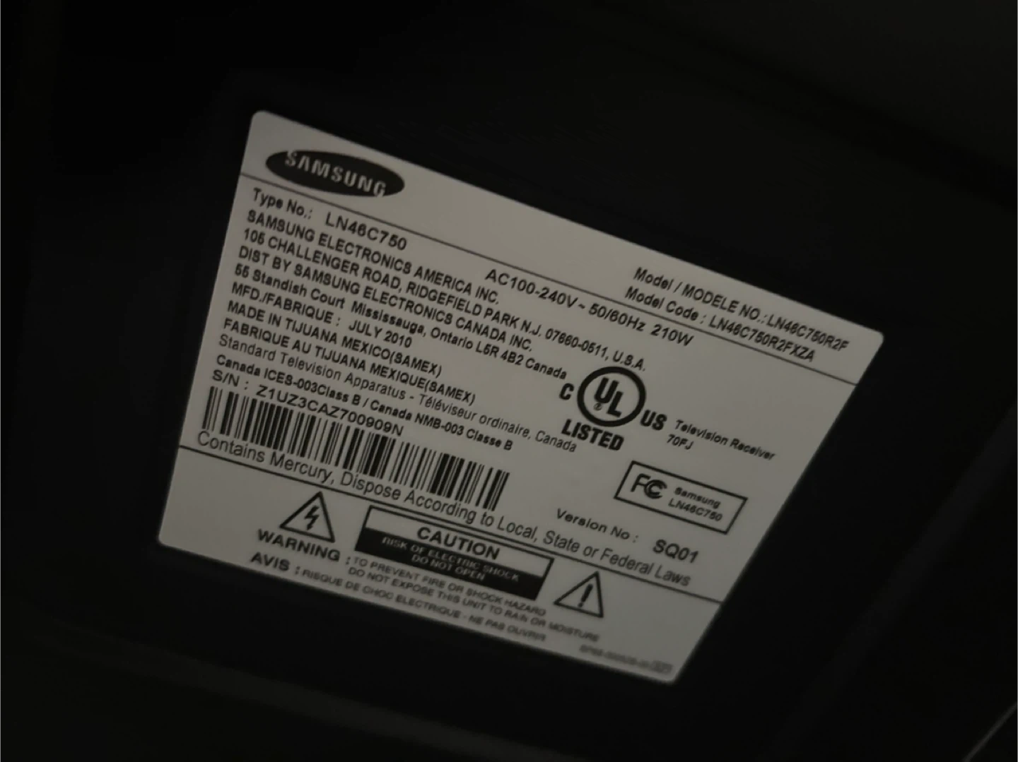 Selling a Samsung LN46C750 46-inch LCD TV. It's in good working condition. The manufacturing date is July 2010. Model code is LN46C750R2FXZA.