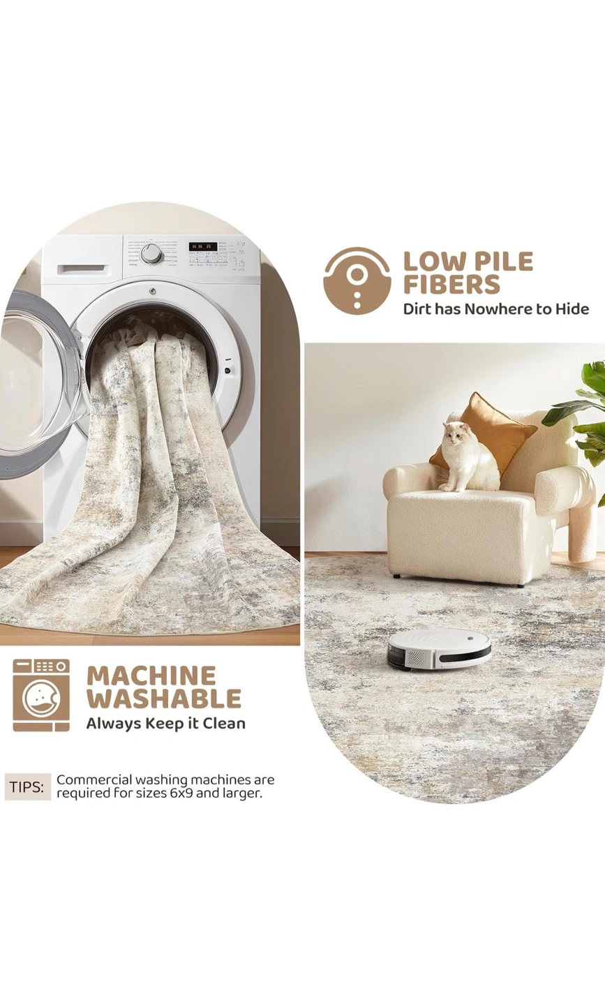 8x10 feet Machine Washable Area Rug - Low Pile
