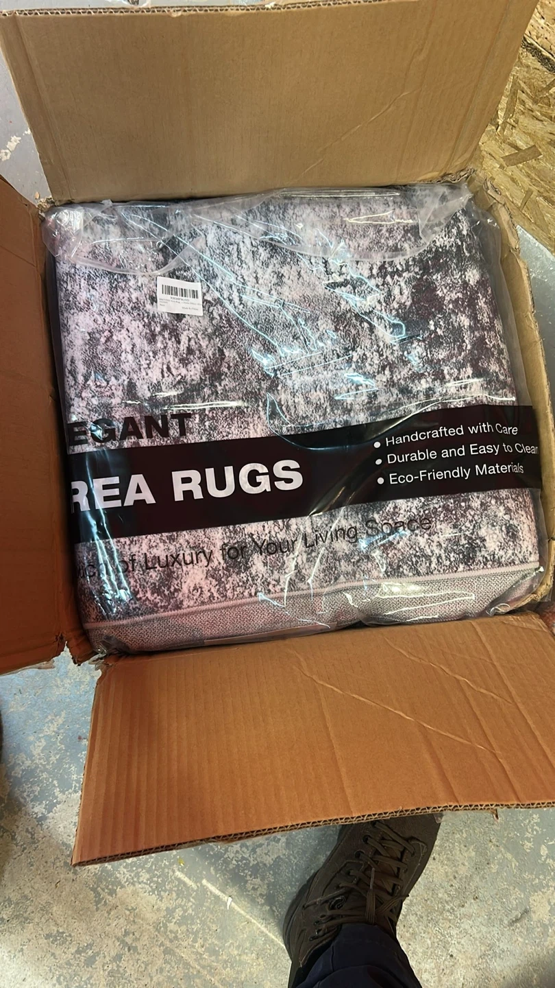 Selling a new Elegant area rug in a stylish grey and white pattern! It's still in its original packaging and ready to add a touch of luxury to your living space. The rug is handcrafted with care, durable, easy to clean, and made of eco-friendly materials. Comes with the box
