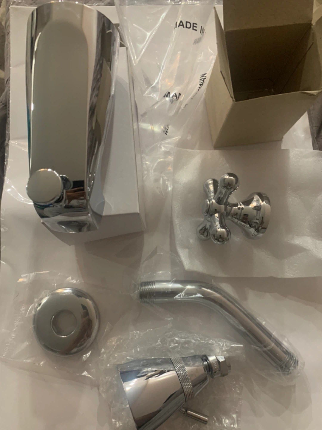 Selling a Kingston Brass shower faucet set in polished chrome. It appears to be in new condition and comes with the original box. Great for a bathroom upgrade!