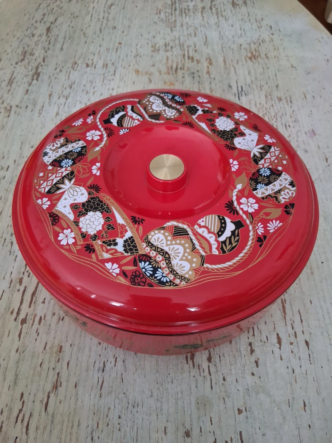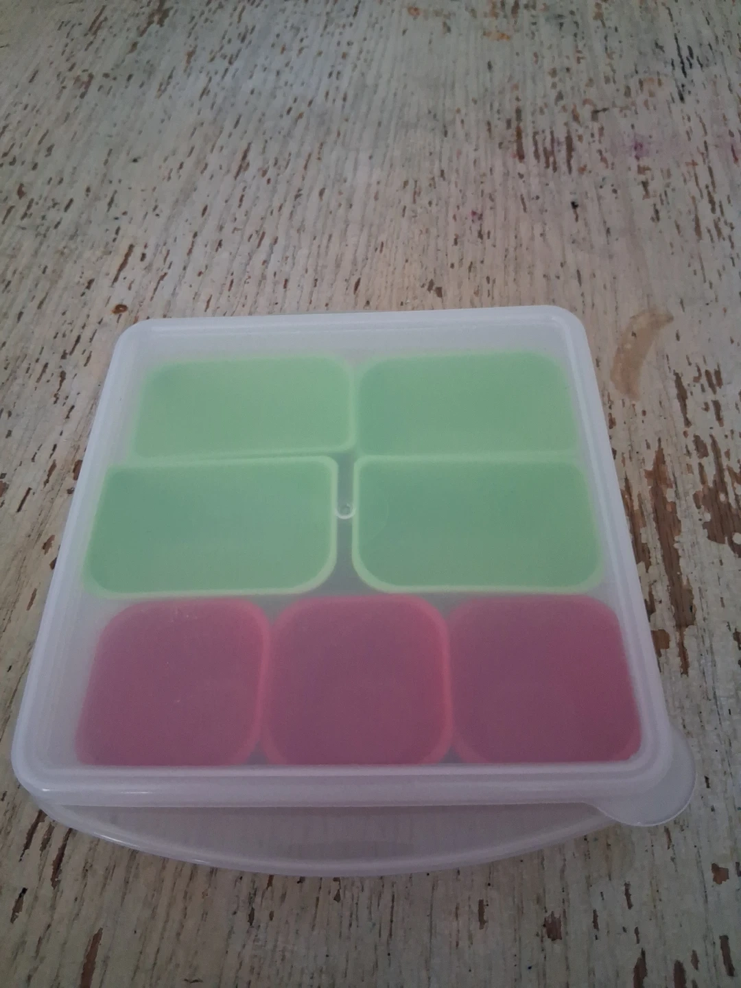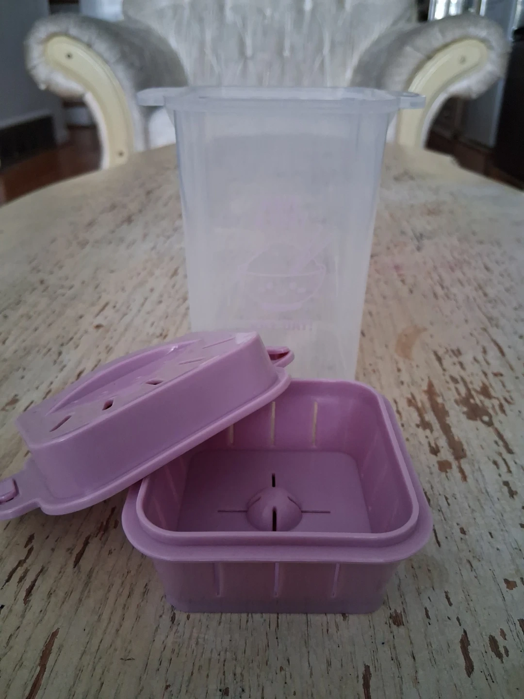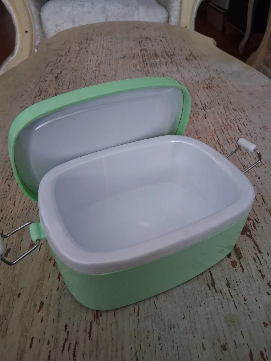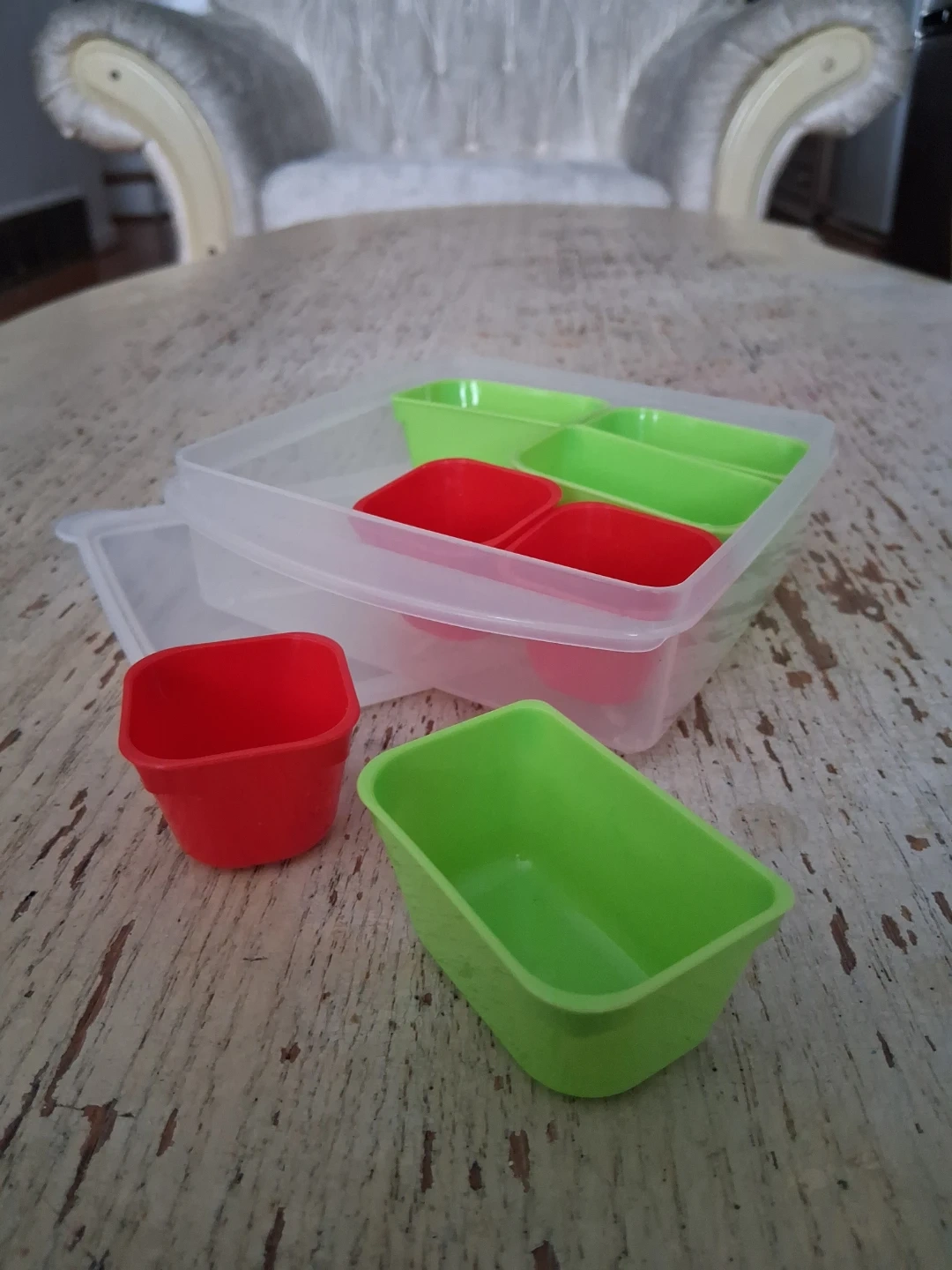 cCollection of assorted food storage containers. Includes a red round tin, a green rice box, a purple container, and a small ice cube tray. Great for parties, packing lunches, and storage. 🙌 $15 for the Bundle!