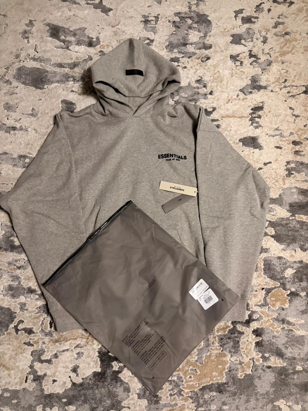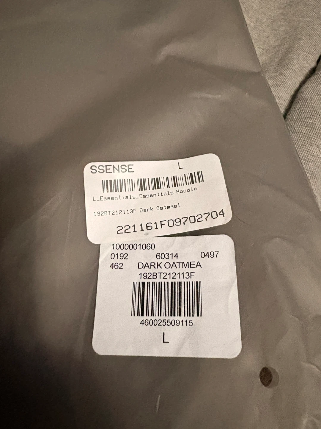Selling a brand new Essentials Fear of God hoodie in size L. The colour is Dark Oatmeal and it comes with the original packaging