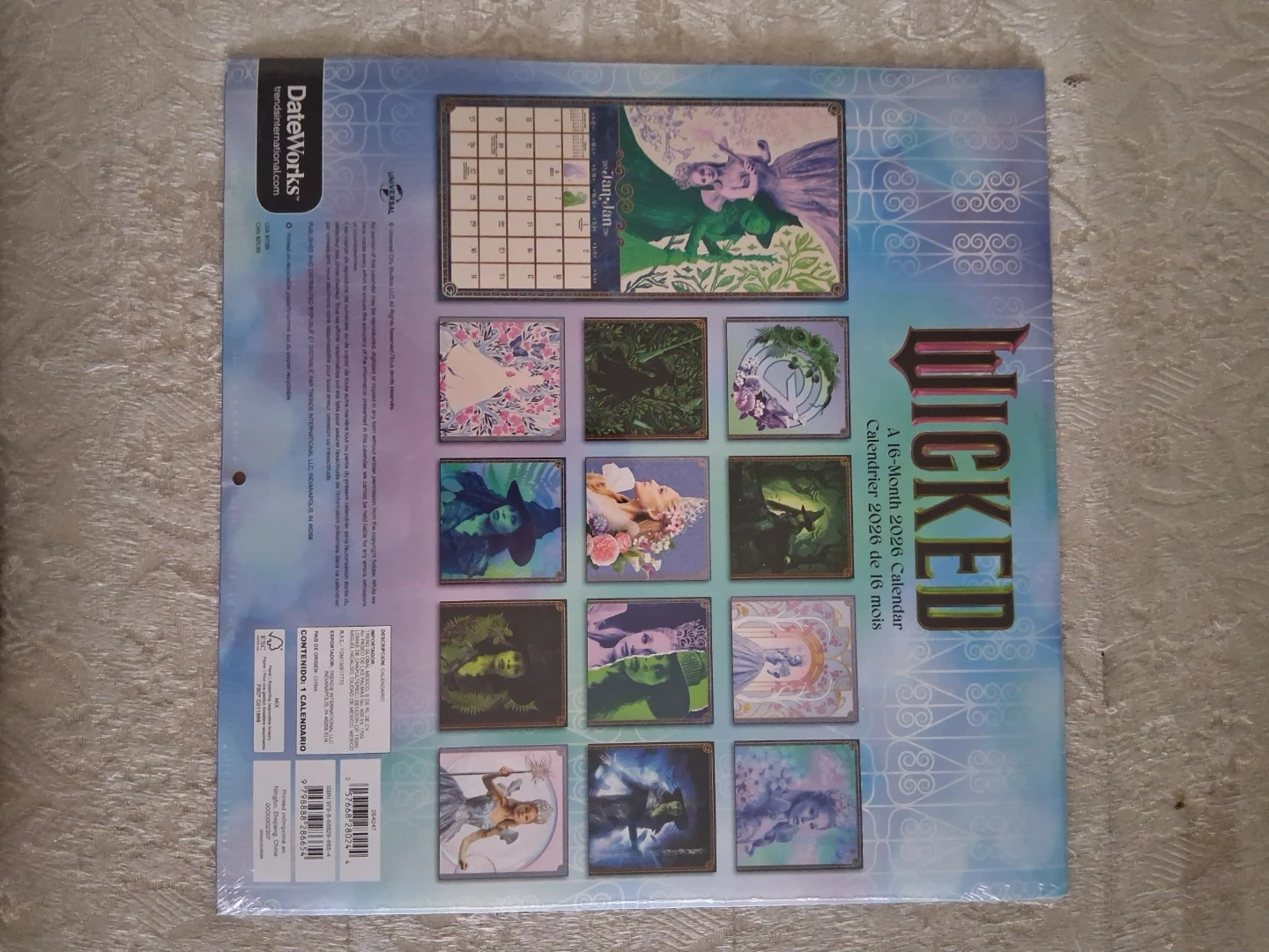Brand new, sealed Wicked 2026 16-month calendar for sale! It features imagery from the popular musical.
