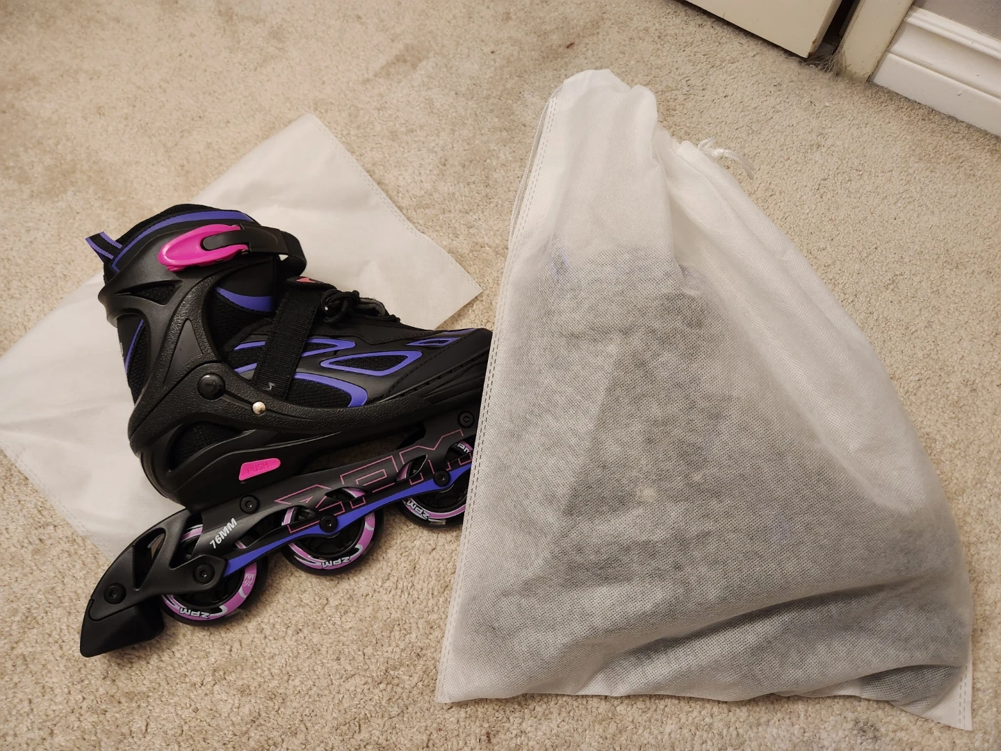 Selling a pair of ZPM inline skates in black and purple! Never used , just like new. Perfect for cruising around the neighbourhood or hitting the local skate park. Size L (4-7 US) extendable.