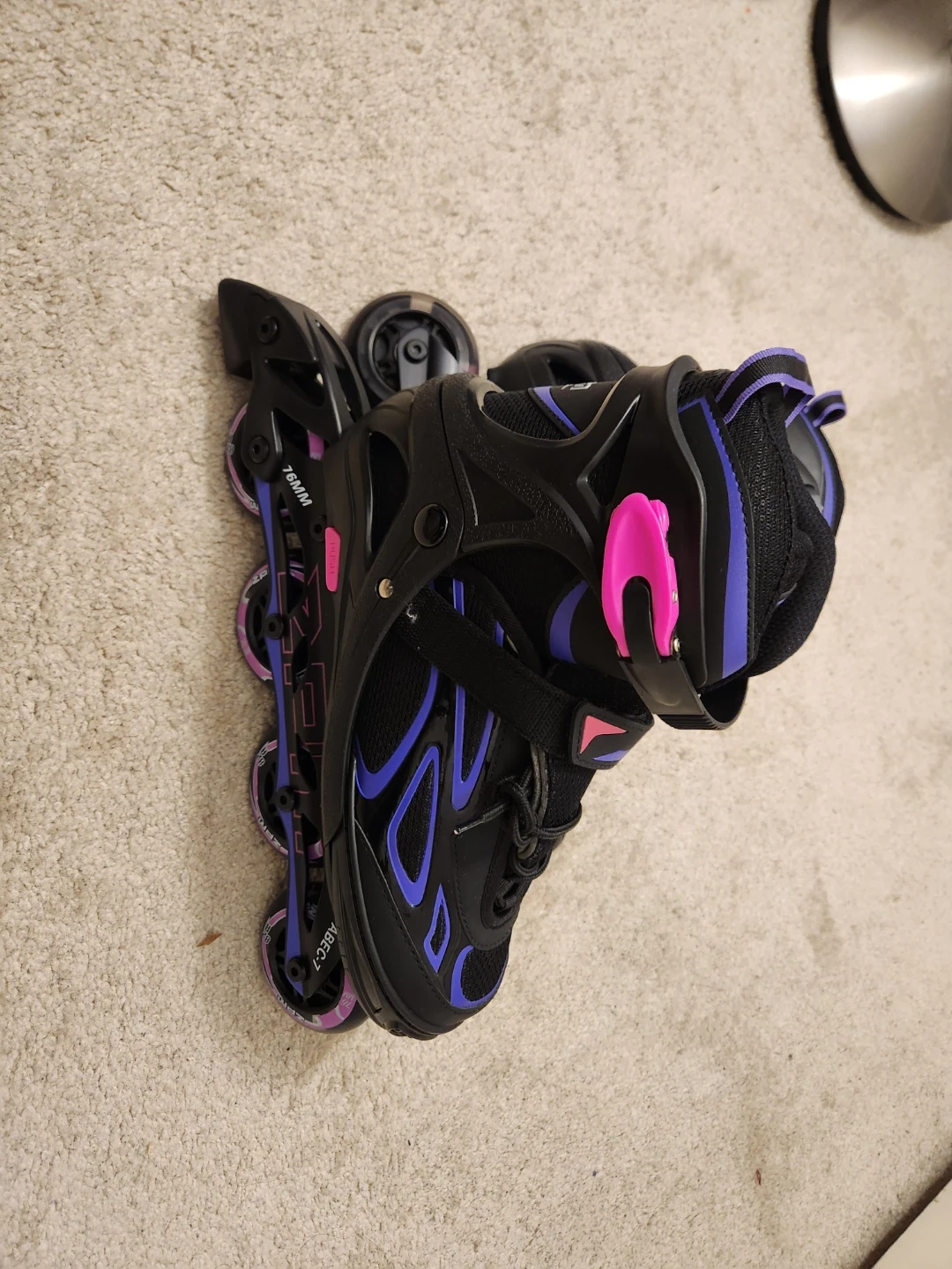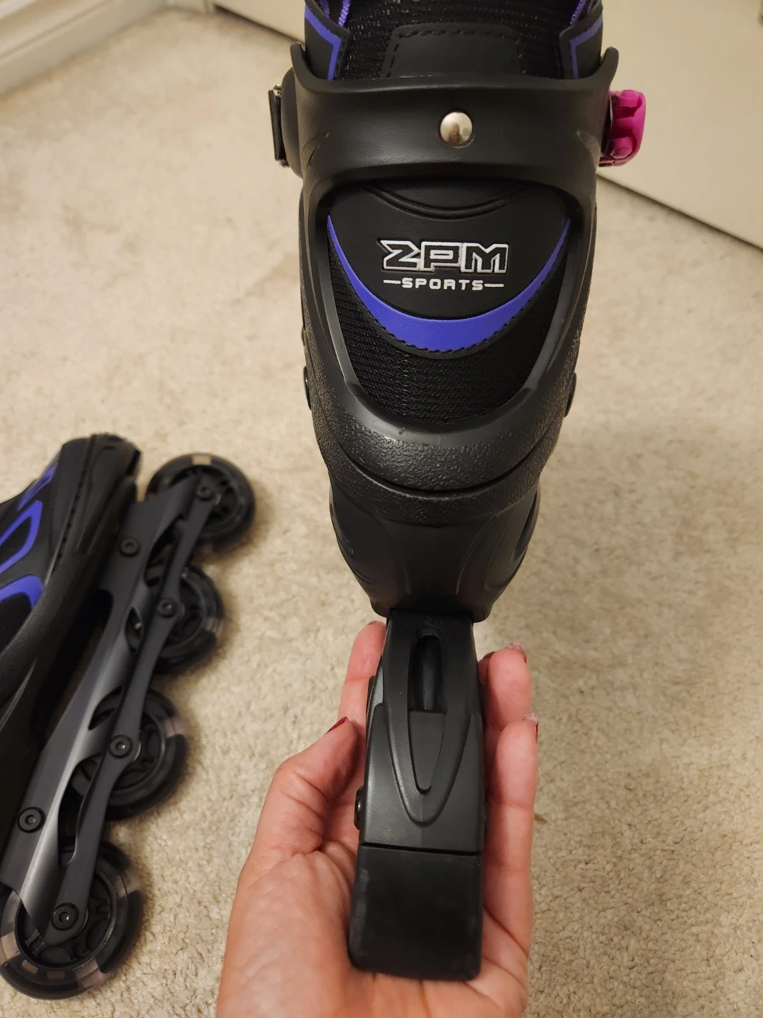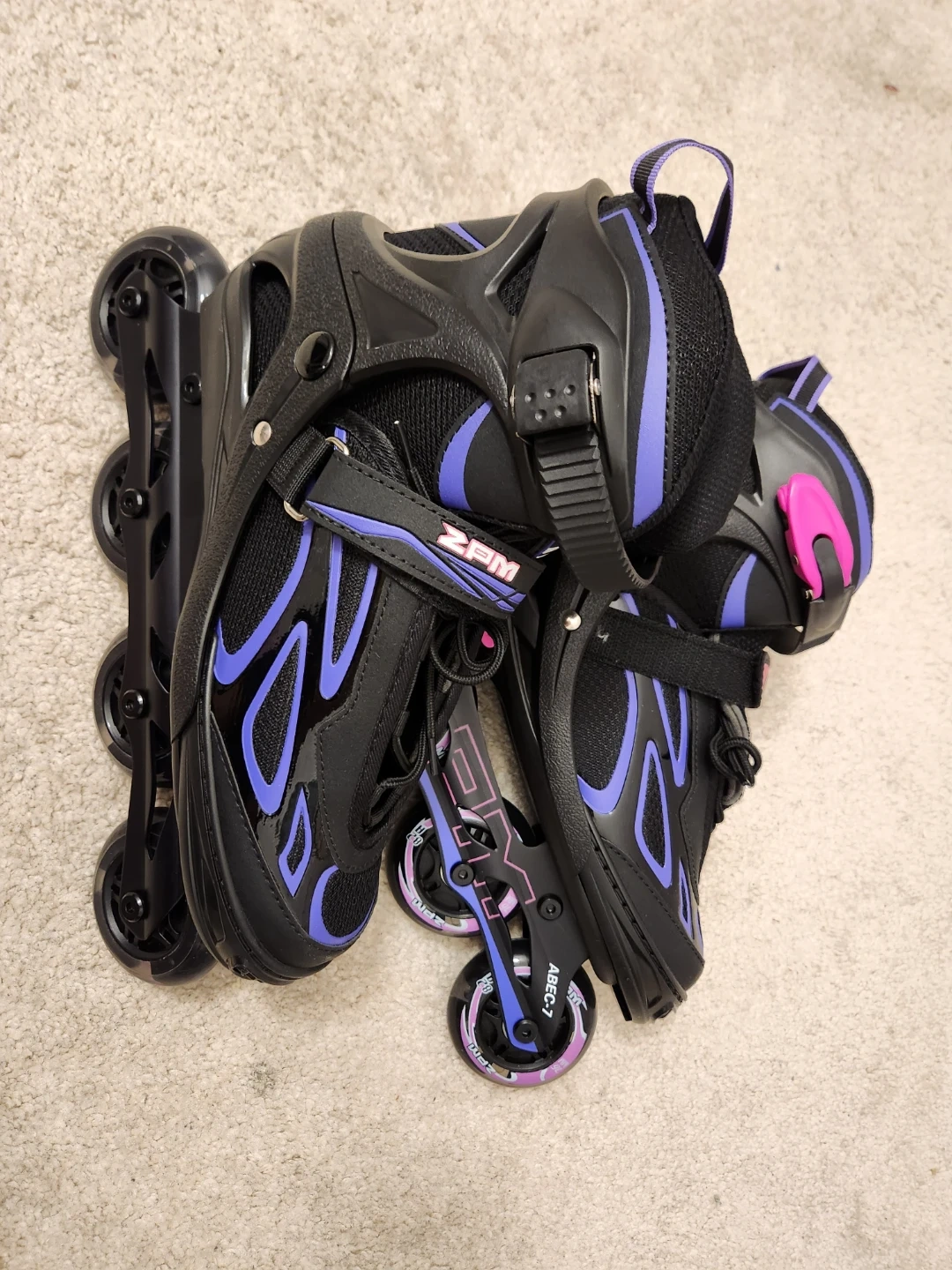 Selling a pair of ZPM inline skates in black and purple! Never used , just like new. Perfect for cruising around the neighbourhood or hitting the local skate park. Size L (4-7 US) extendable.