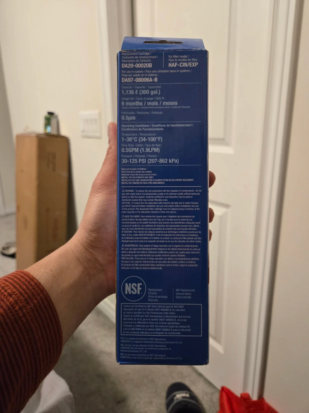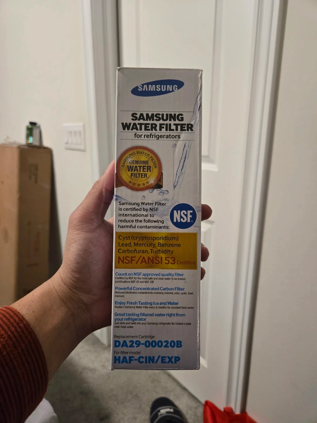 Selling a brand new Samsung DA29-00020B water filter for refrigerators! This is a replacement cartridge that ensures you get fresh, great-tasting ice and water right from your fridge. It's certified to reduce harmful contaminants like cyst, lead, mercury, benzene, carbofran, and turbidity. It's an NSF/ANSI 53 certified filter. Get cleaner, clearer water with this filter!
