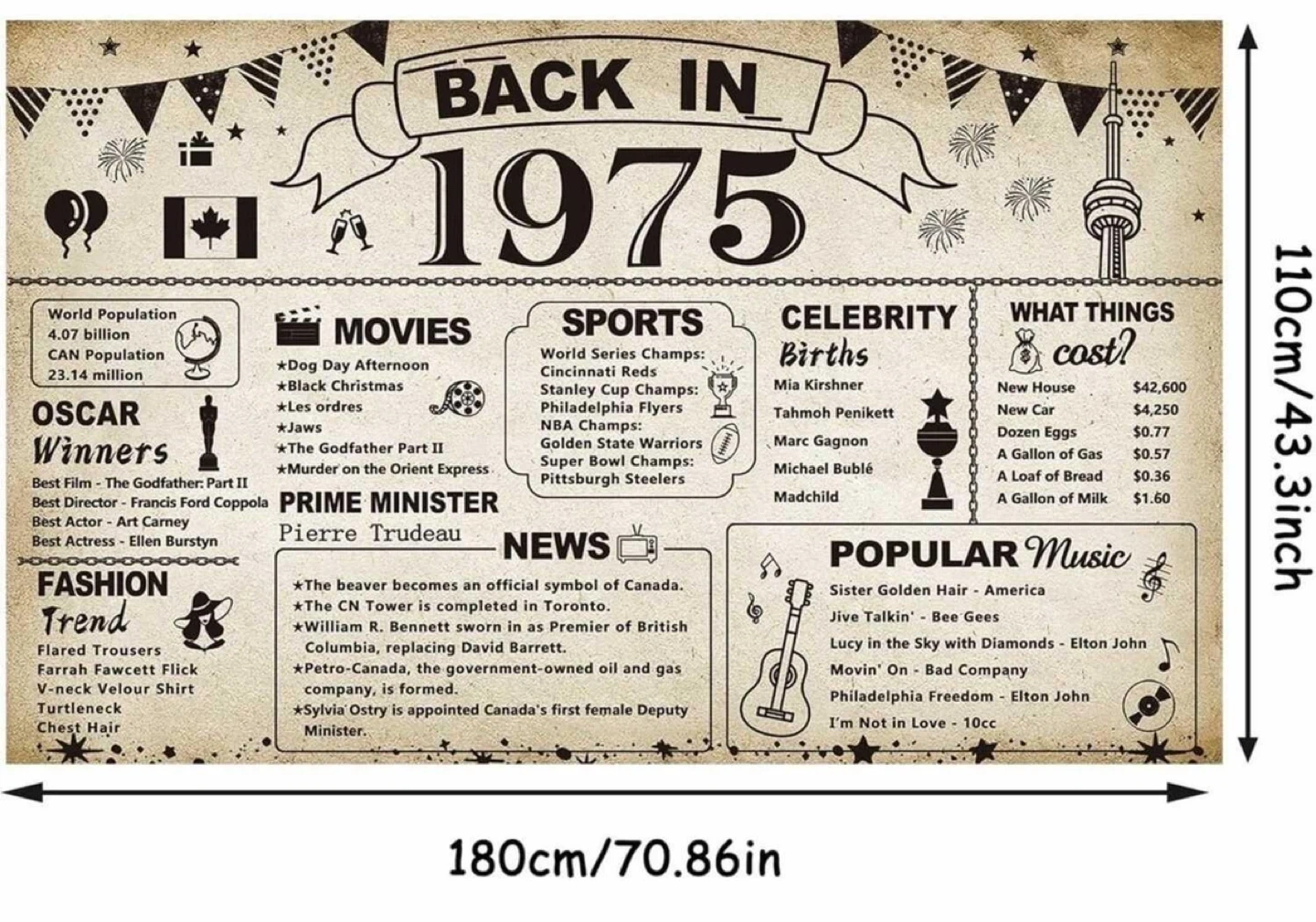 Super fun, conversation starting party decoration for someone born in 1975 or having an anniversary.
