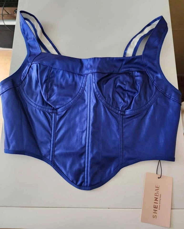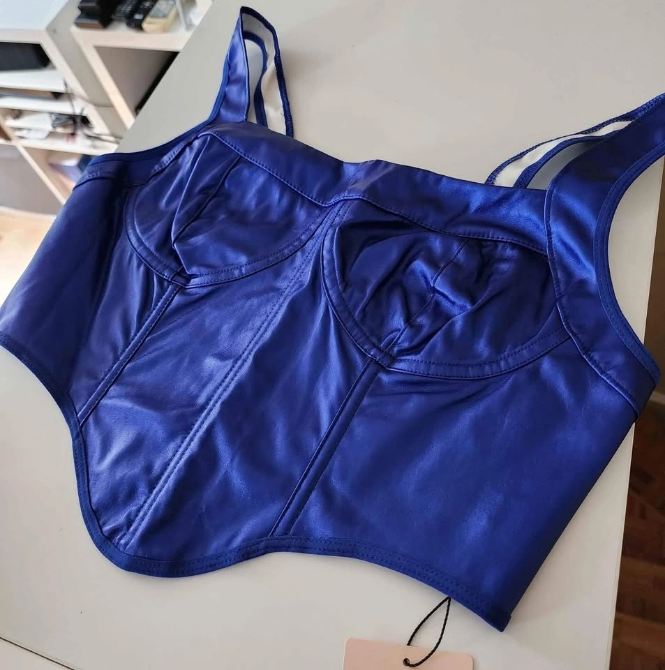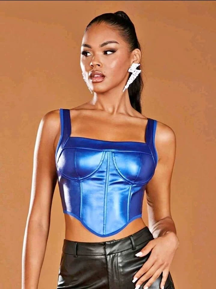 Offering a beautiful purple blue metallic PU leather crop top.