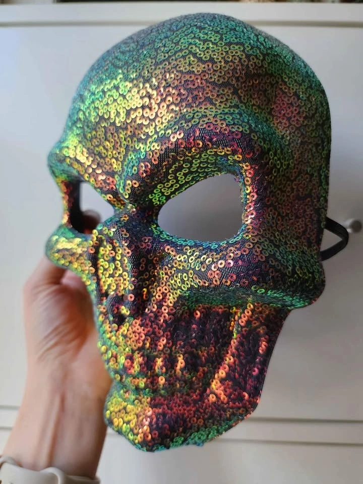 Holographic Multicolor Sequin Skull Mask * Party * Decor * NEW