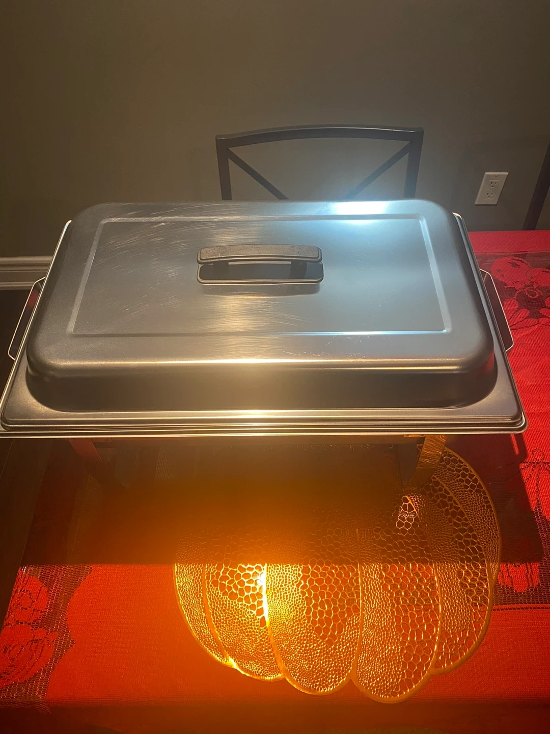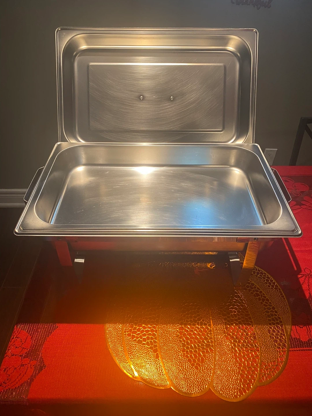 Selling a stainless steel chafing dishes, perfect for keeping food warm at your next gathering! It's in great shape and ready to use. Great for parties, potlucks, or any event where you want to keep your dishes at the perfect serving temperature