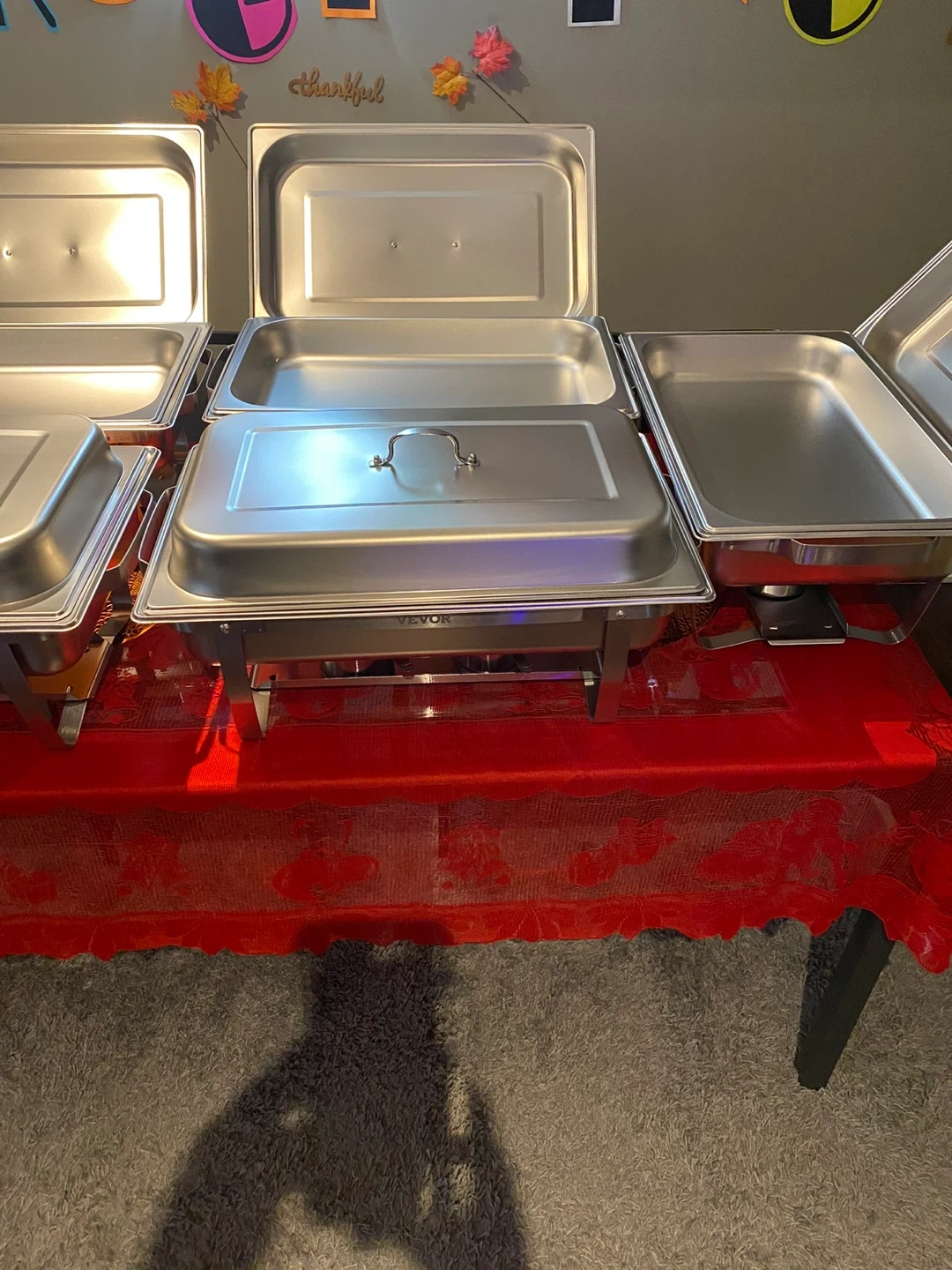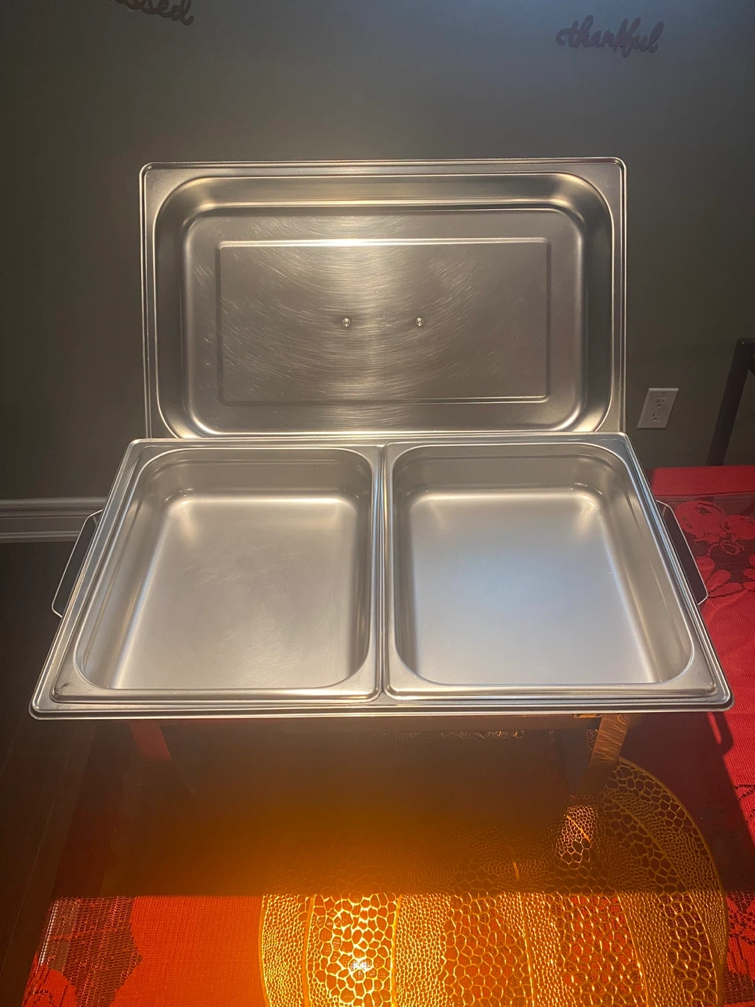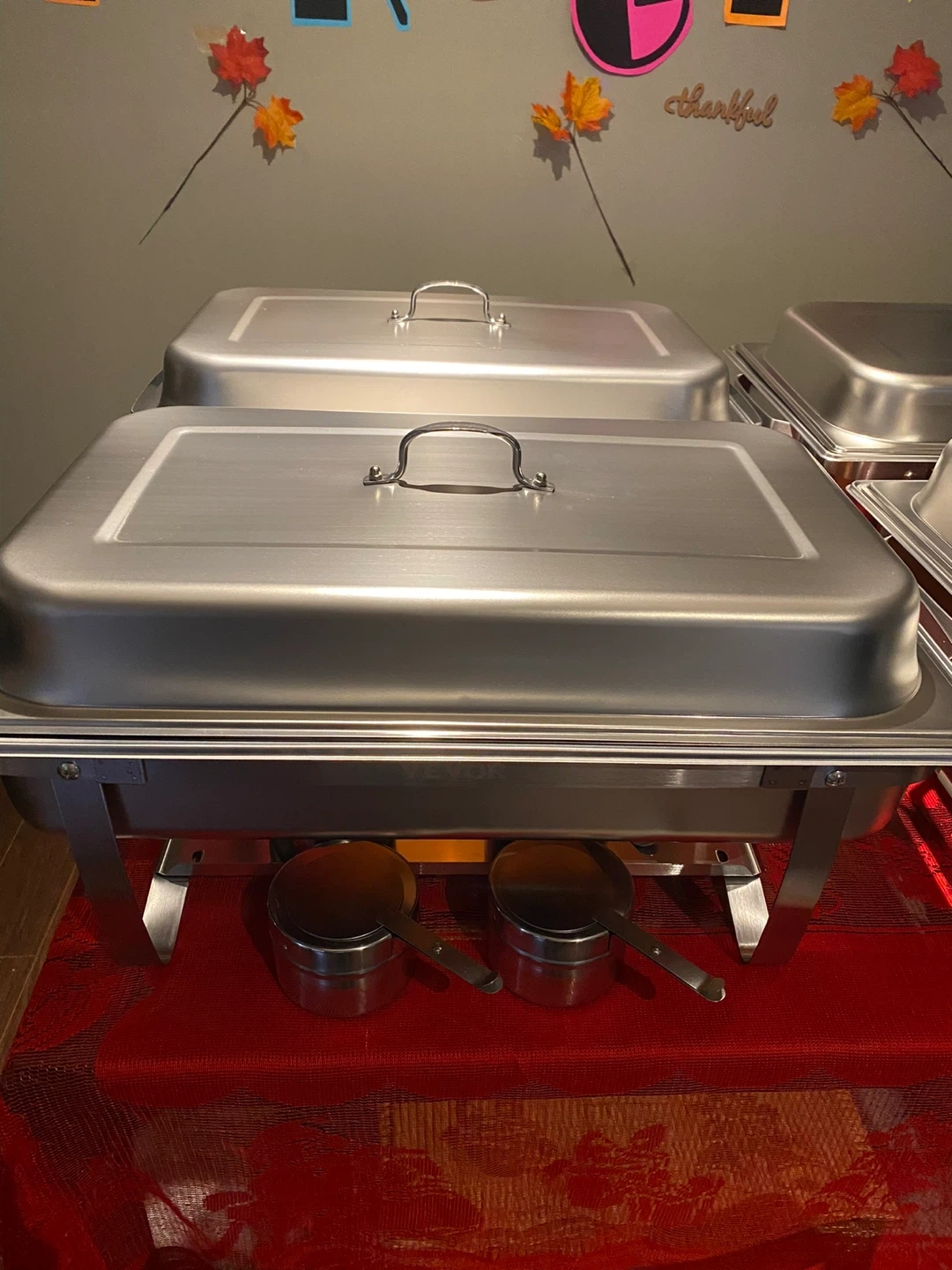 Selling a stainless steel chafing dishes, perfect for keeping food warm at your next gathering! It's in great shape and ready to use. Great for parties, potlucks, or any event where you want to keep your dishes at the perfect serving temperature