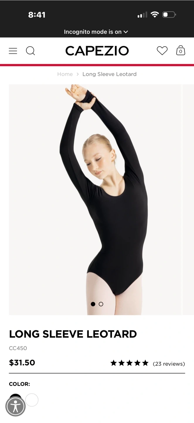Selling a black long-sleeve leotard from Capezio. It's in great condition and perfect for dance or gymnastics! The style is CC450. Retails for $31.50.