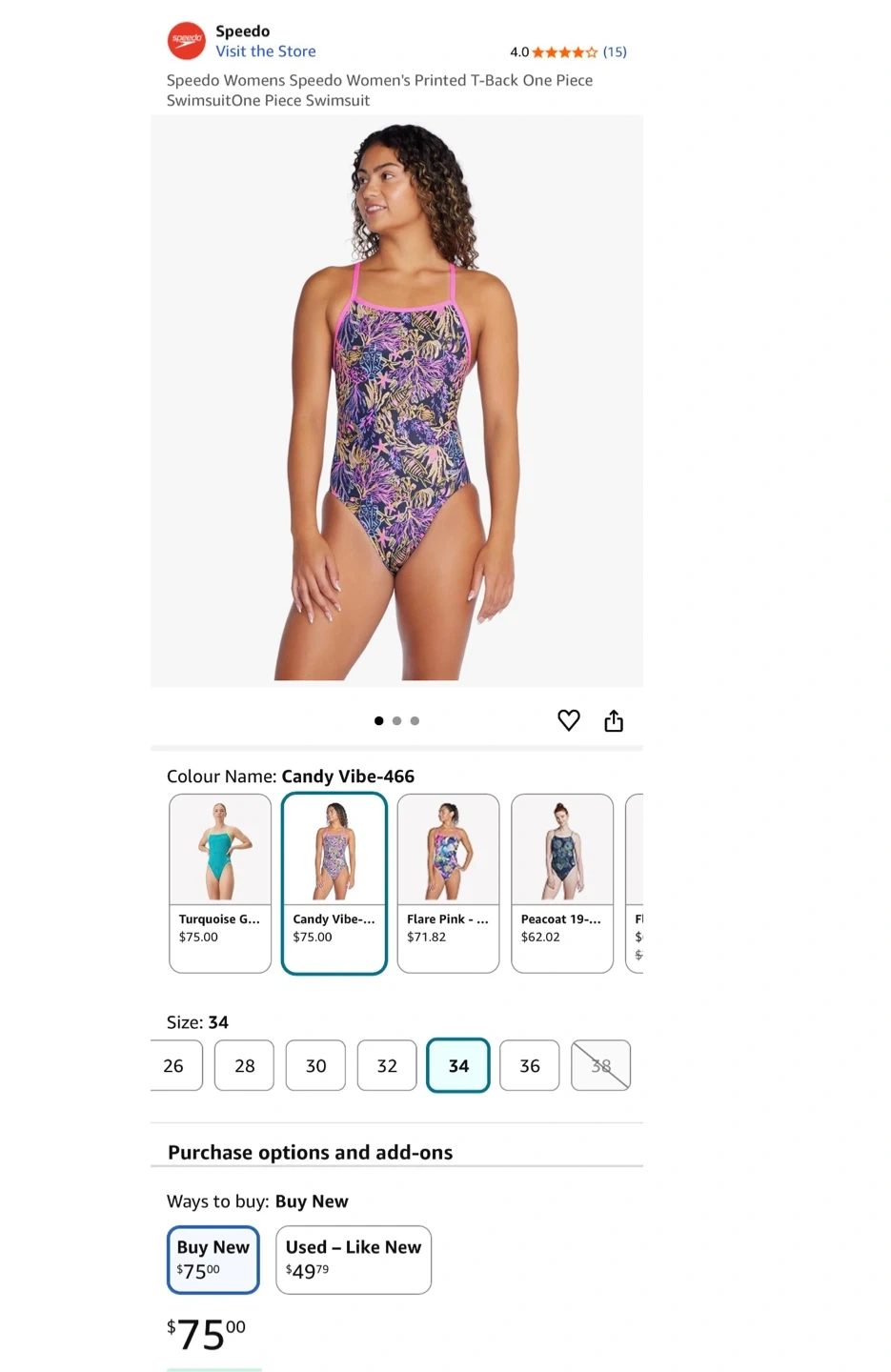 Selling a brand new with tags Speedo Women's Printed T-Back One Piece Swimsuit in size 34! The colour is Candy Vibe-466 Retails for $75