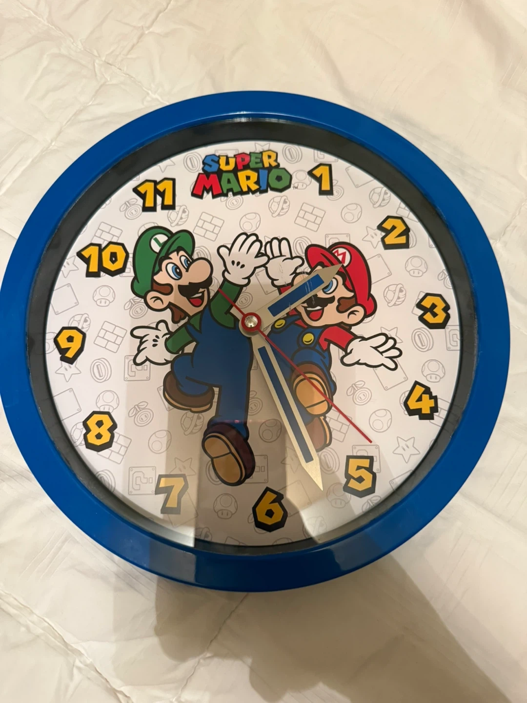 Buy & SellSuper Mario Wall ClockSuper Mario Wall Clock$7Super Mario wall clock featuring Mario and Luigi on the face! The clock has a blue frame and numbers from 1 to 12ConditionGoodWHERE TO MEETCheck LocationView MapSELLERRitaSecond Street100 reviews1 chats·0 favorites·5 viewsSEND CHAT TO SELLERHi Rita! I’m interested in your listing.Hi Rita! I’m interested in your listing.Get the Karrot app to chatSign In to chat