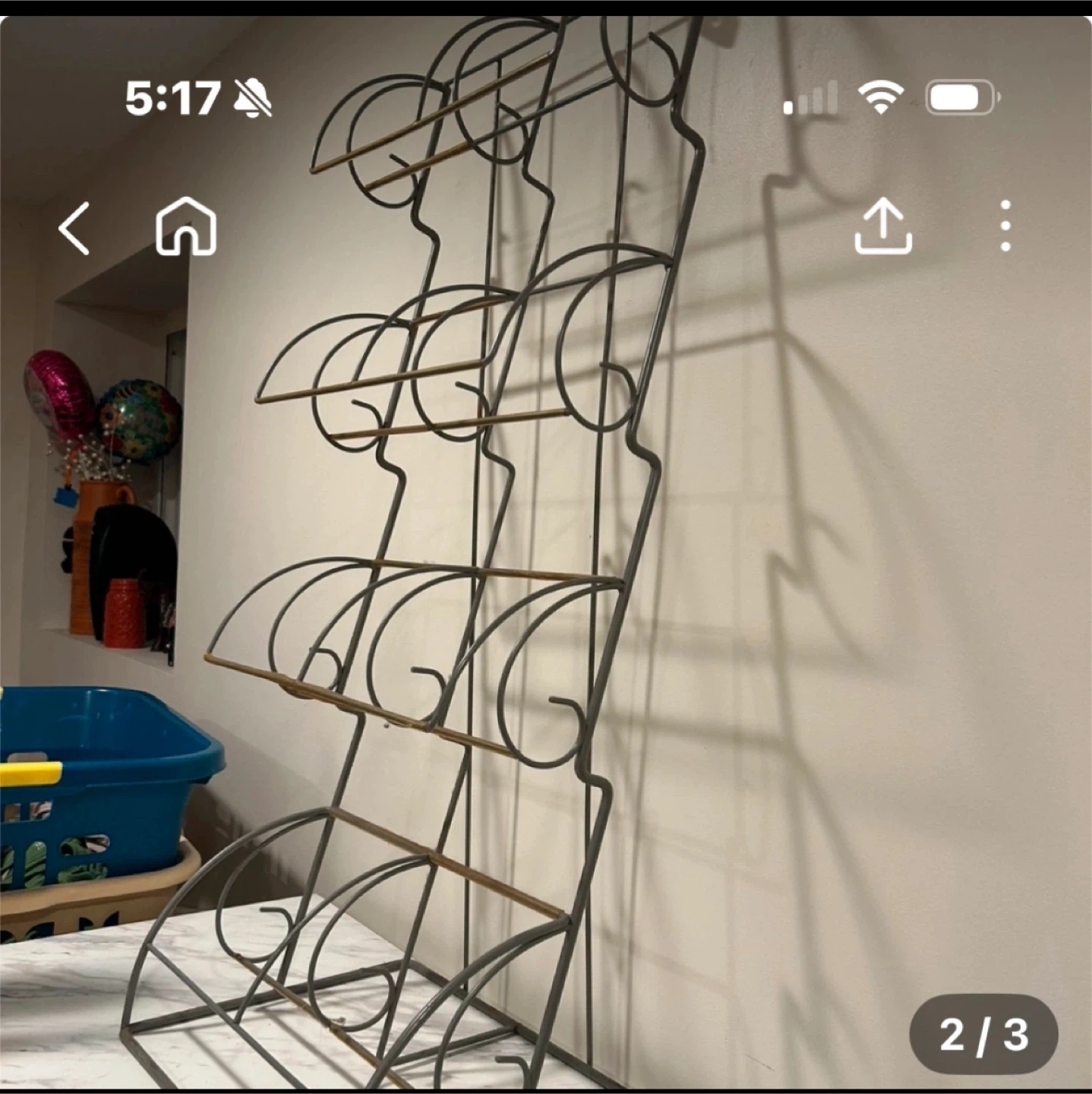 Offering a metal rack that's perfect for displaying your favorite plants, media or other items! It is W 13 H 32”. Slots 6” , and it will look great in your kitchen or dining area