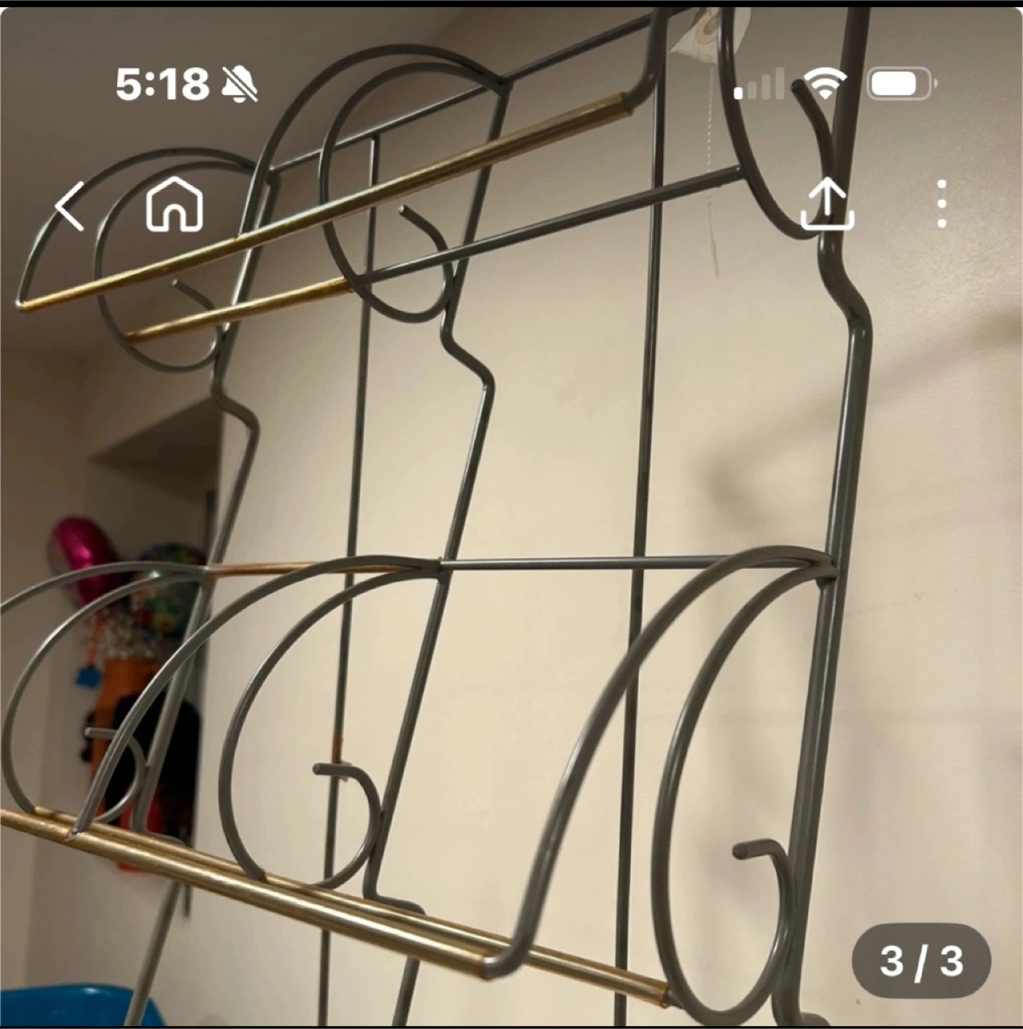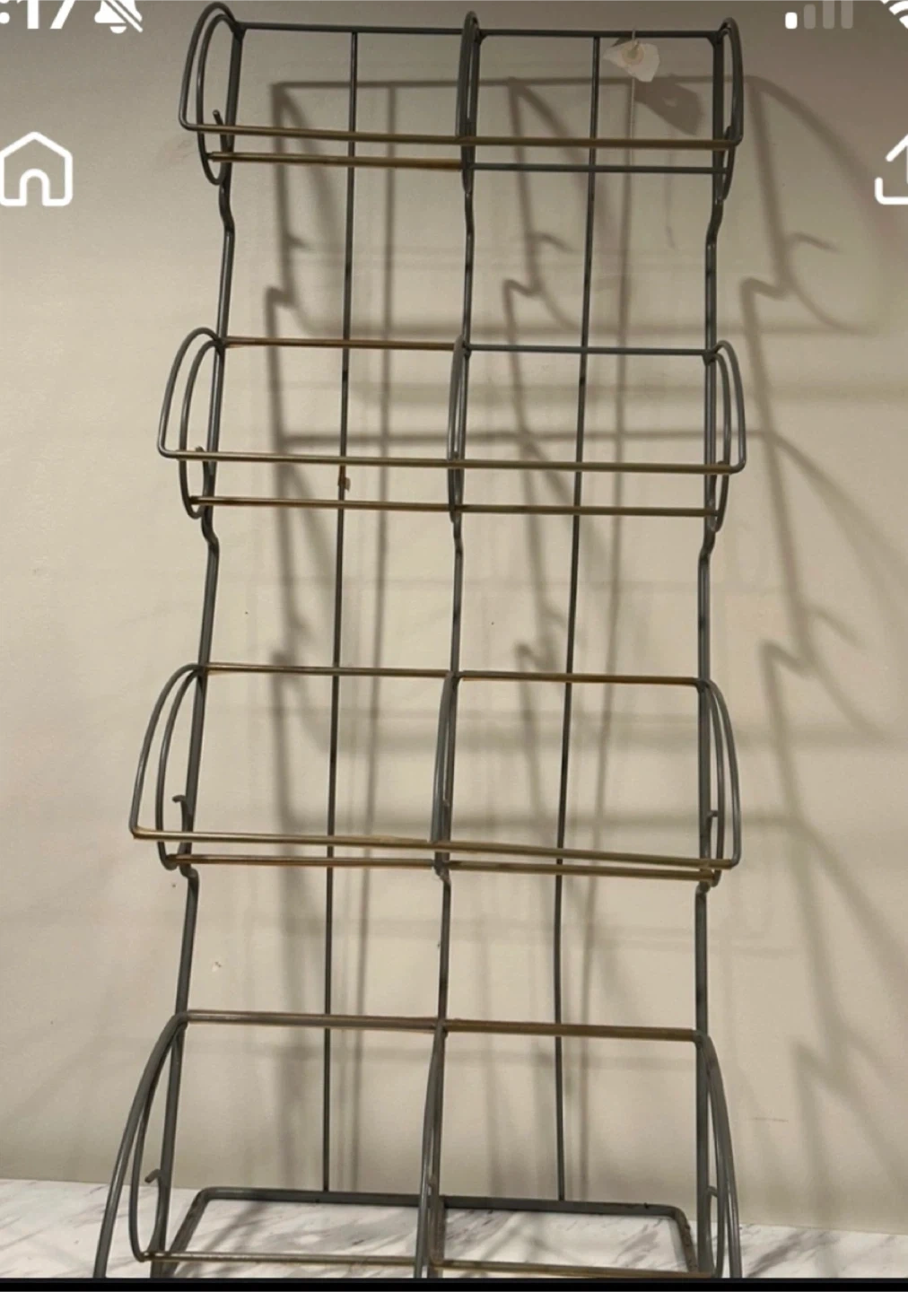 Offering a metal rack that's perfect for displaying your favorite plants, media or other items! It is W 13 H 32”. Slots 6” , and it will look great in your kitchen or dining area