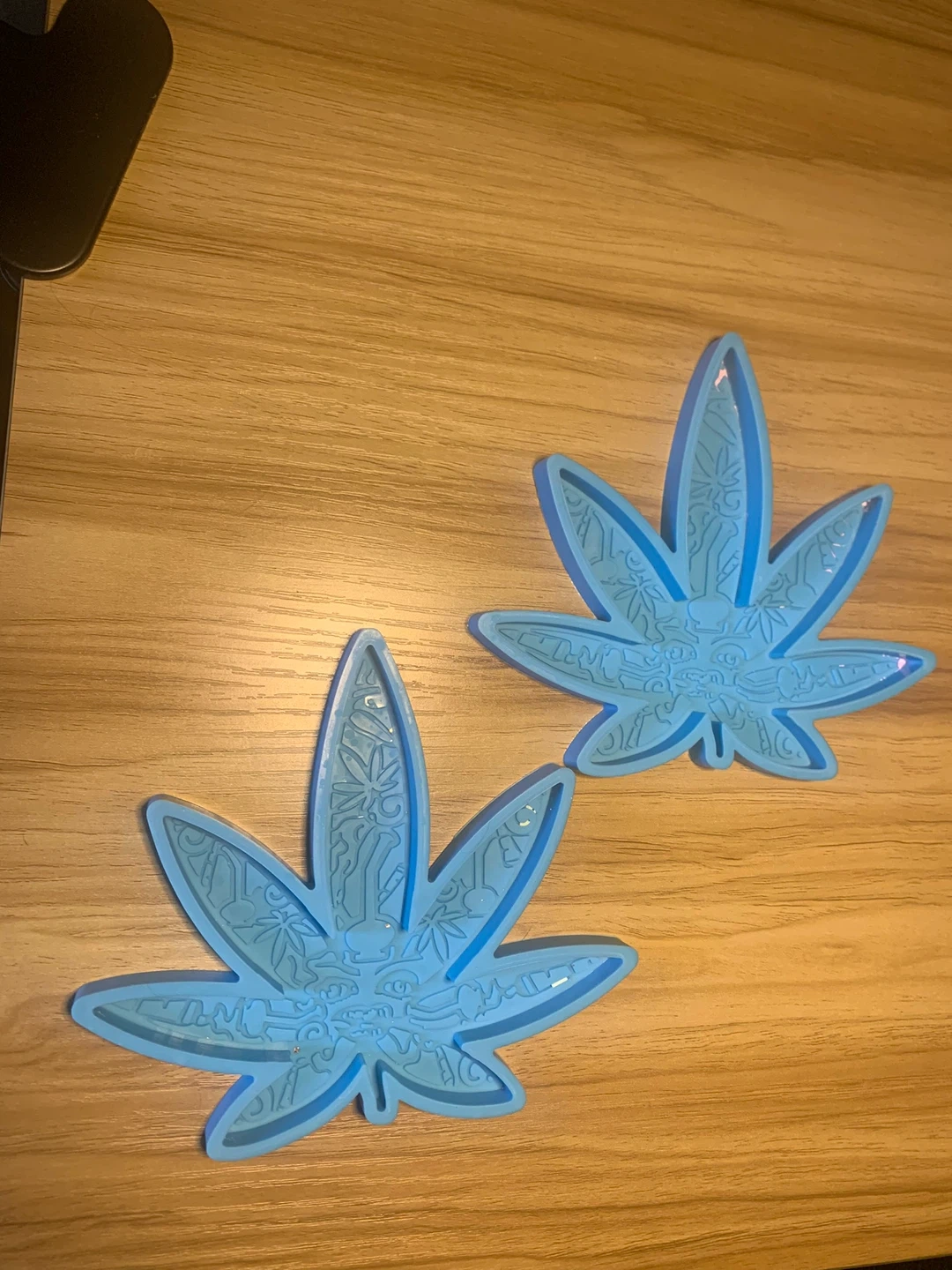 I'm selling a set of silicone molds. The set includes various shapes such as oval, leaf, and square. The leaf molds are approximately 5.35 inches (13.6cm) in height and 4.72 inches (12cm) in width. The molds are made of safe material, are easy to clean, and solid and durable, making demoulding quick and easy! Looking to sell as a set, will consider offers for individual items.