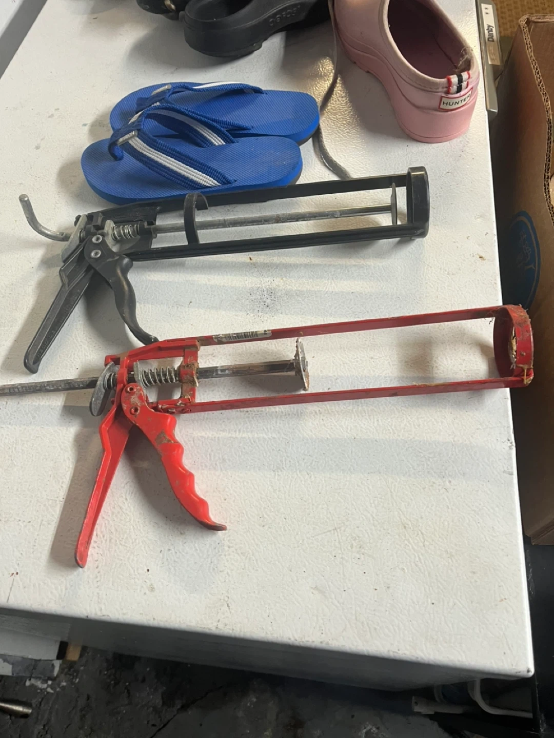 Selling two caulk guns, one red and one black. Both show signs of use but are still functional. Great for your next DIY project!