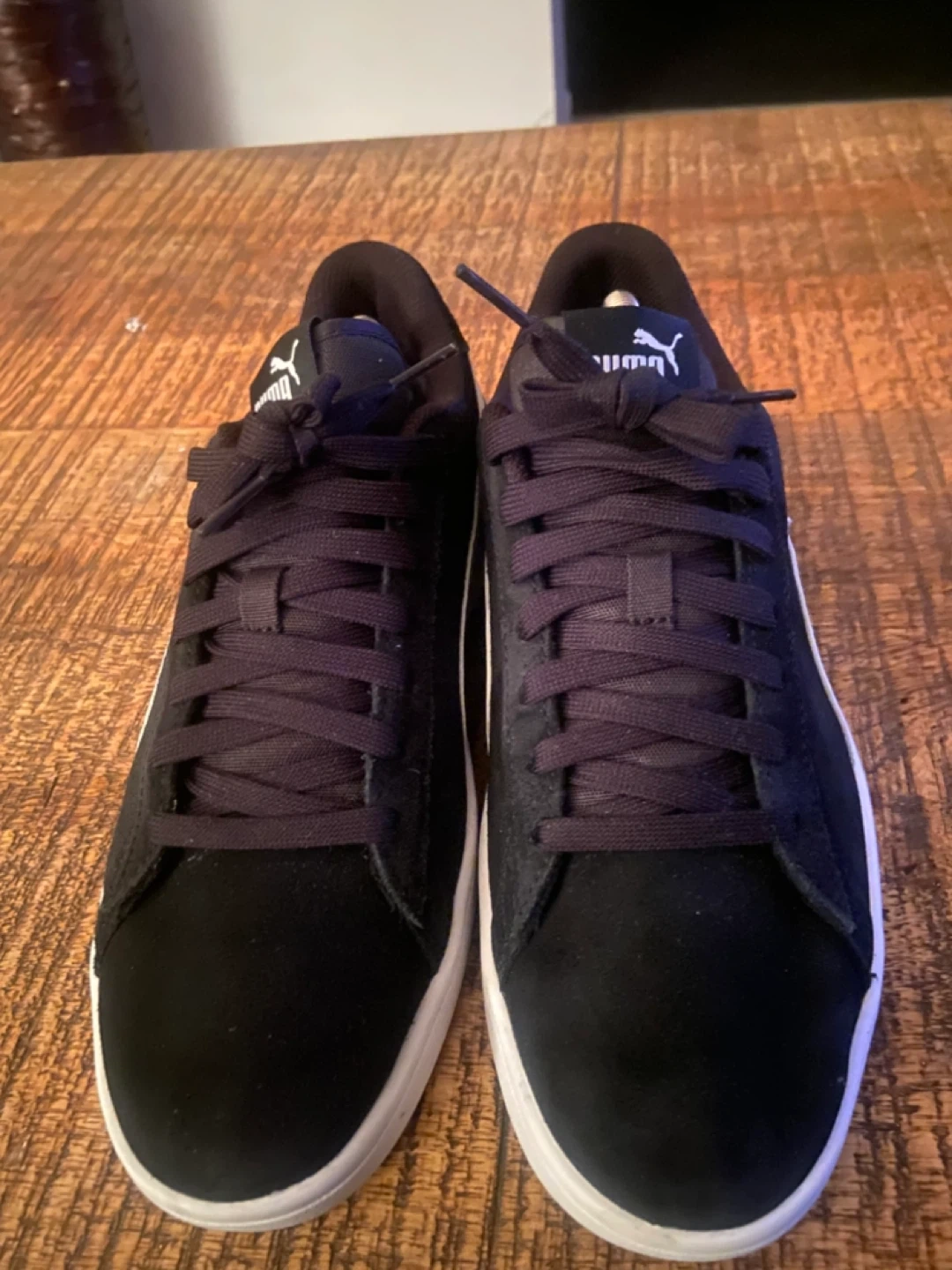 Selling a pair of Puma Smash Buck sneakers in black. They're in great shape and ready for a new owner! These stylish and comfortable shoes are perfect for everyday wear.