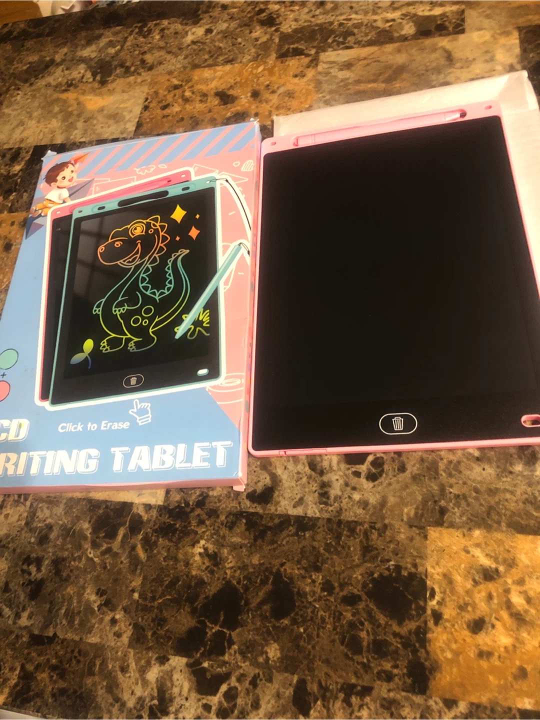 I'm selling a new cute LCD writing tablet! It's in new condition and comes with the original box. Perfect for kids to doodle and draw on, and it's super easy to erase with just a click. The tablet is pink and lightweight, making it great for travel or keeping little ones entertained at home! I have new 25 tablets available in 3 volutes punk blue orange.These tablets are a great gift for the daycare kids!