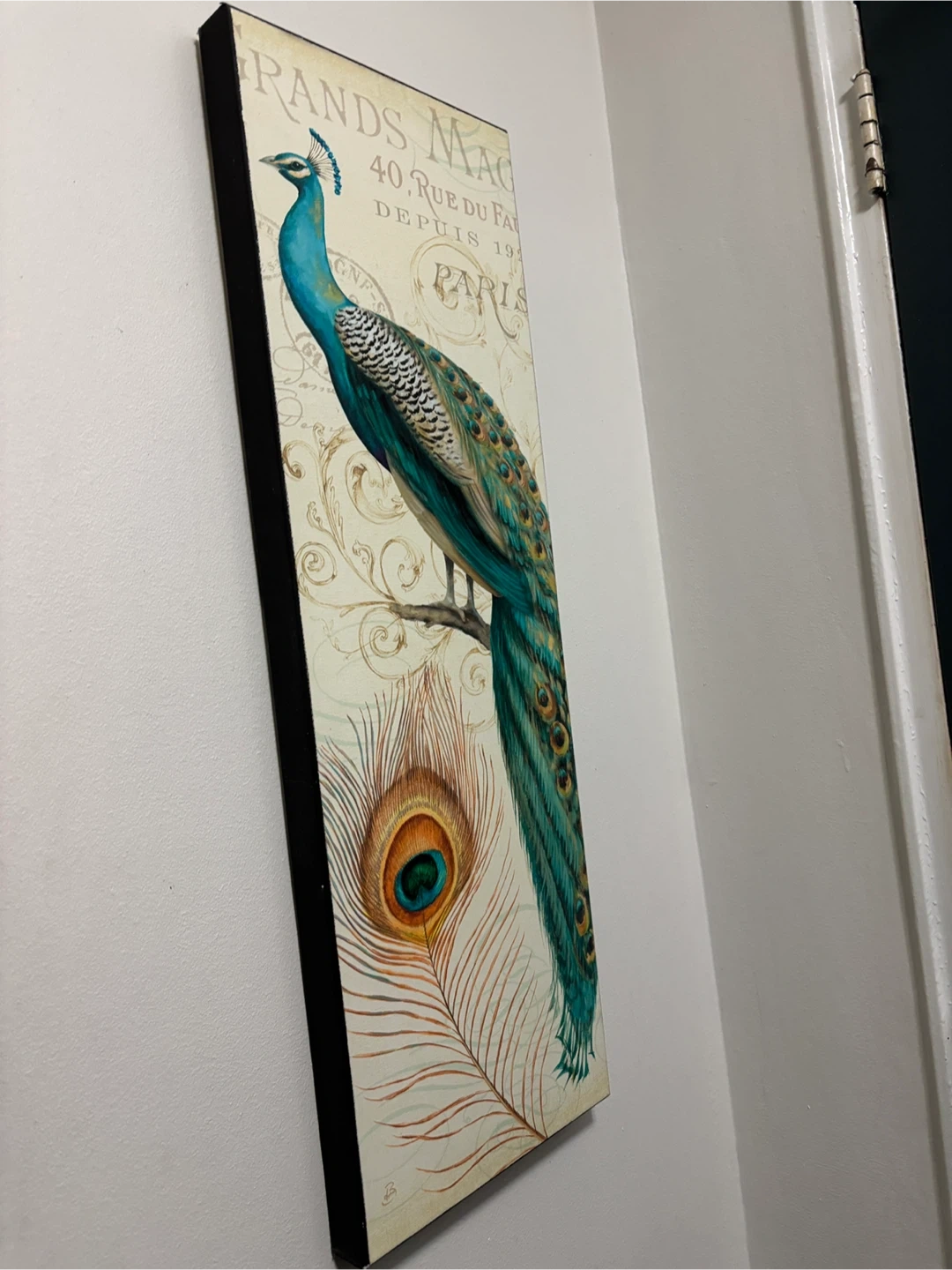 Beautiful peacock wall art, perfect for adding a touch of elegance to any room! The artwork features a vibrant peacock and feather design.