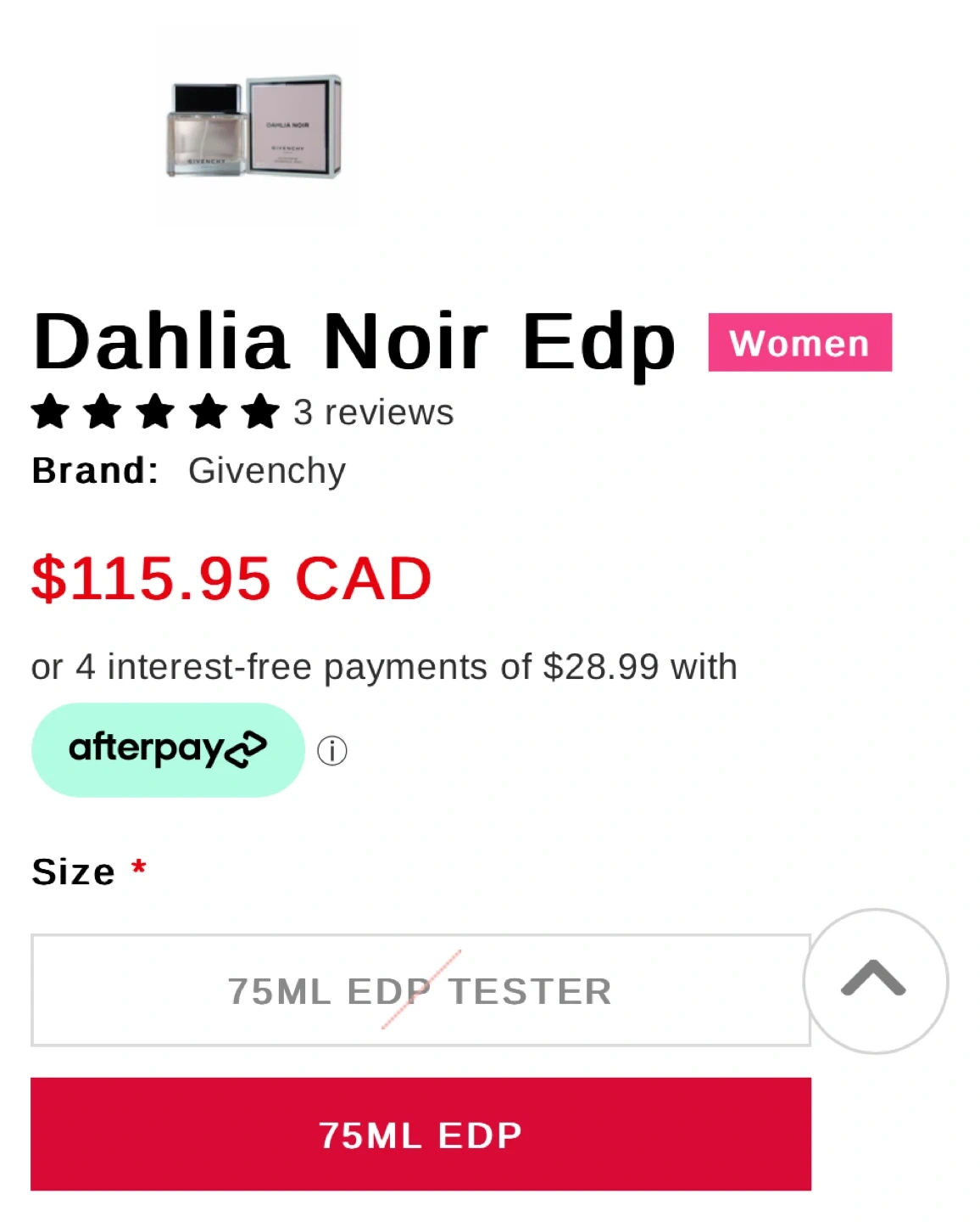 Buy & SellGivenchy Dahlia Noir Edp 75mlGivenchy Dahlia Noir Edp 75ml$40Selling a bottle of Givenchy Dahlia Noir Eau de Parfum. It's a 75ml bottle. Originally bought for $115.95 CAD Pickup only. McKenzie Lake SEConditionNewBrandGivenchyWHERE TO MEETCheck LocationView MapSELLERverifiedLauraMckenzie Lake770 reviews1 chats·1 favorites·22 viewsSEND CHAT TO SELLERHi Laura! I’m interested in your listing.Hi Laura! I’m interested in your listing.Get the Karrot app to chatSign In to chat