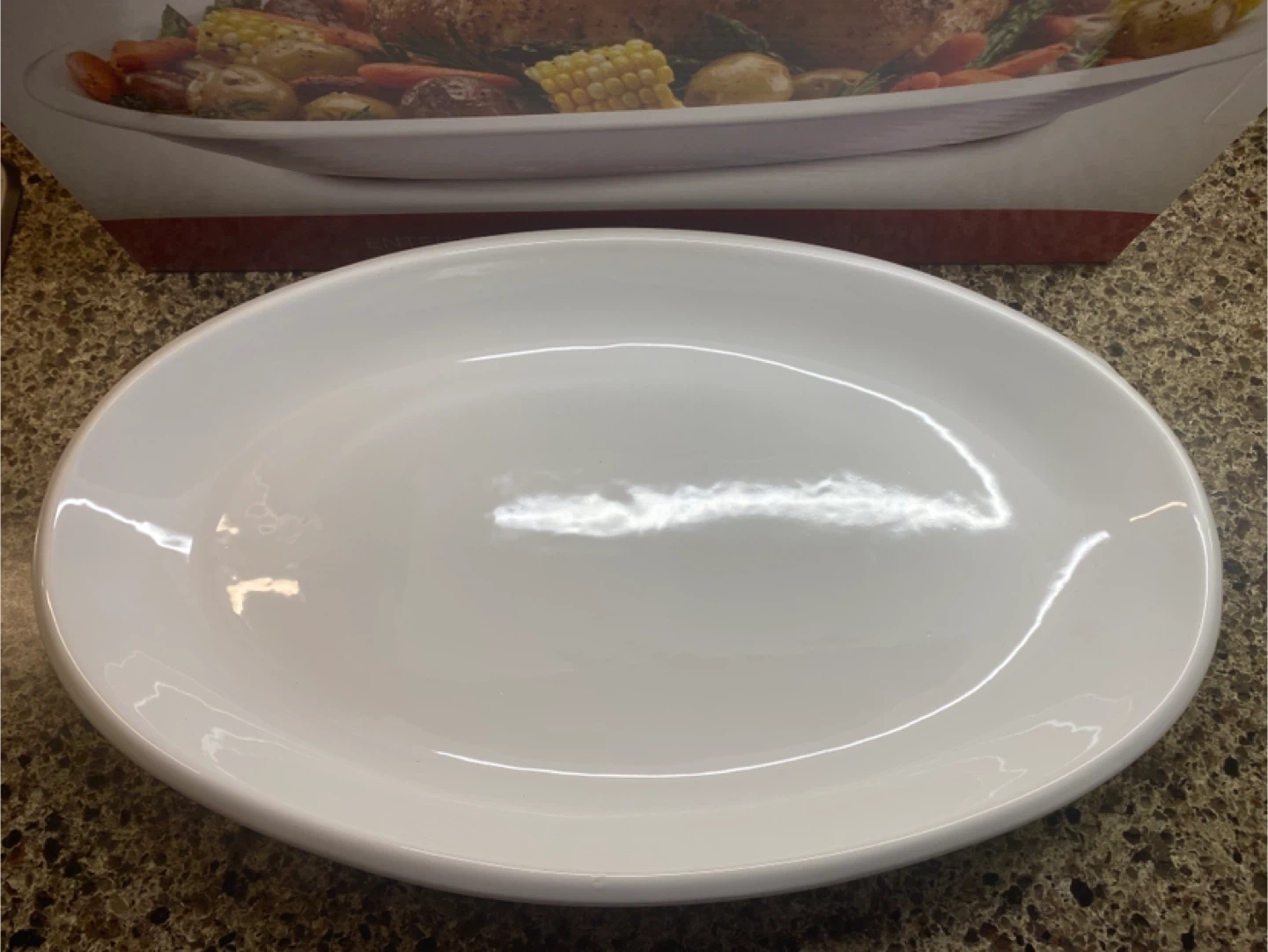 I'm selling a new Gibson Home Brite Kitchen 17" Oval Platter! It's a bright white colour and perfect for serving up your favourite dishes. It's in great condition and ready for a new home!