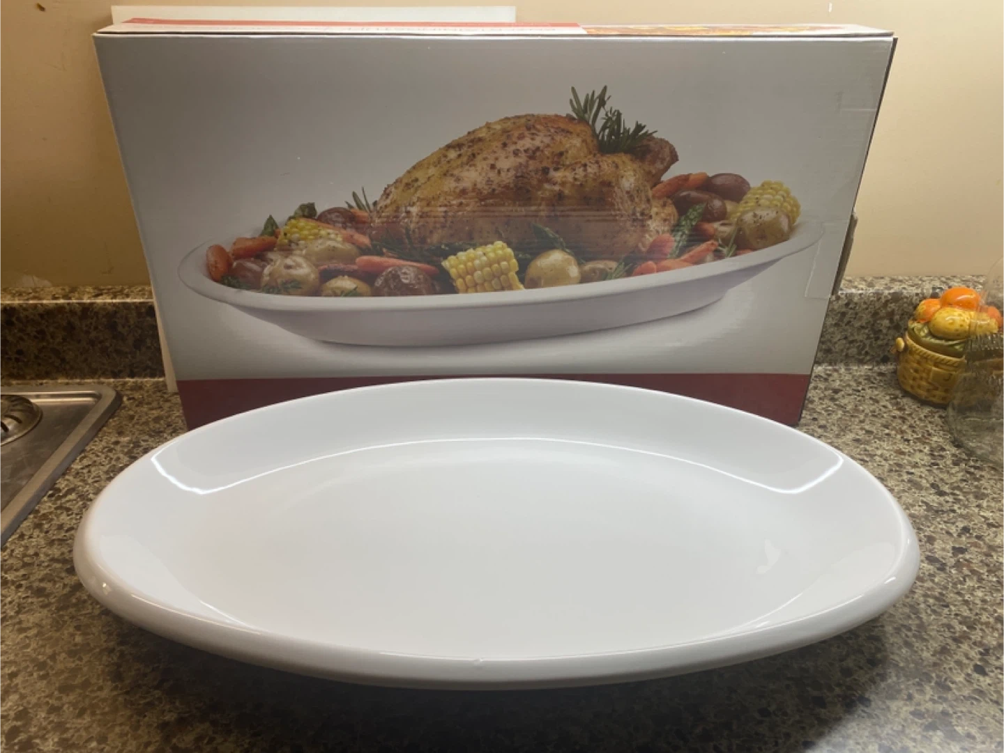 I'm selling a new Gibson Home Brite Kitchen 17" Oval Platter! It's a bright white colour and perfect for serving up your favourite dishes. It's in great condition and ready for a new home!