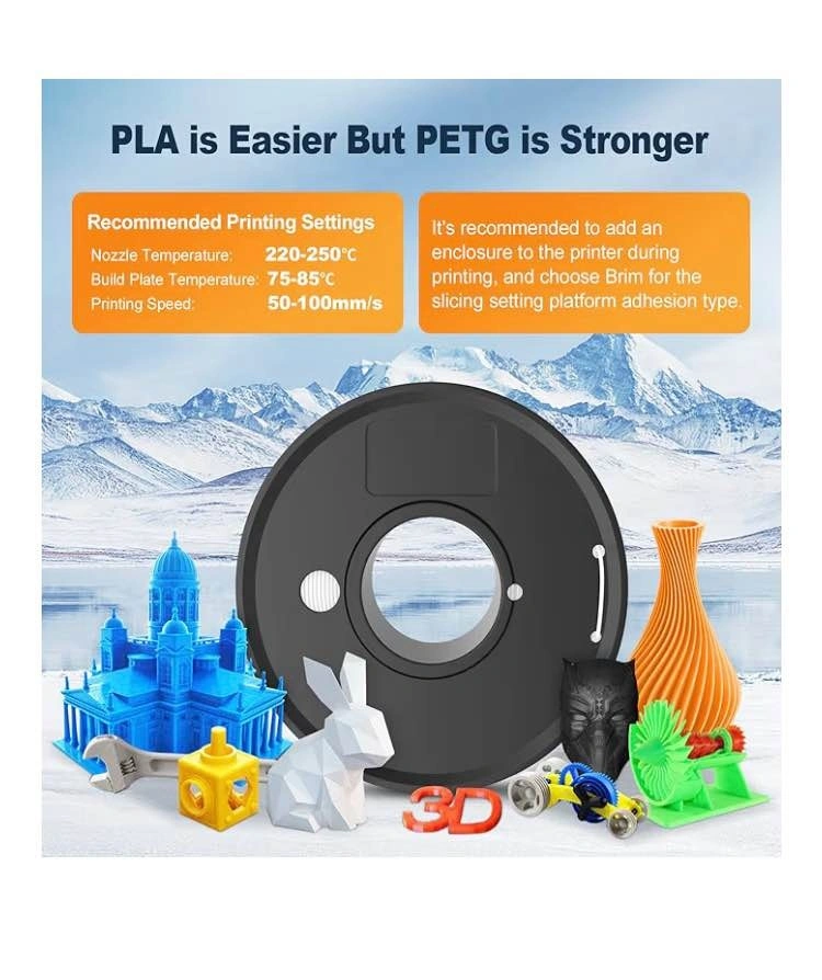 PETG Filament 1.75mm 3D Printer Filament Bundle Multicolor, Individually Vacuum Packed, 2kg in Total, 0.25kg per Spool, 8 Pack, 8 Colors,Black+White+Grey+Red+Klein Blue+Green+Yellow+Sunny Orange