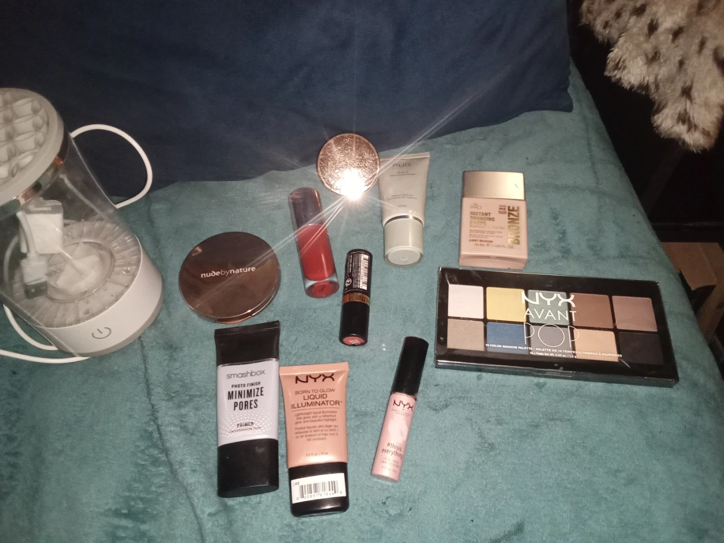 Selling a makeup lot that includes items from NYX, Smashbox, Nude by Nature, and PUR. The lot includes: