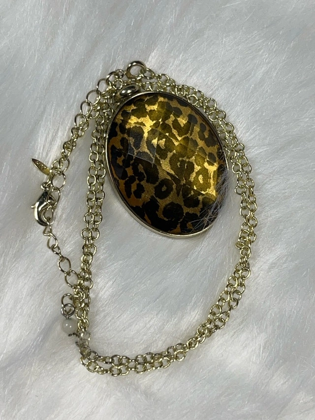 Check out this Avon gold-tone necklace, featuring a striking leopard print pendant. This vintage necklace is a statement piece that is sure to catch eyes. Specifications: * Brand: Avon * Pendant Design: Leopard Print * Colour: Gold * Type: Fashion If you are reading this, it's still available!
