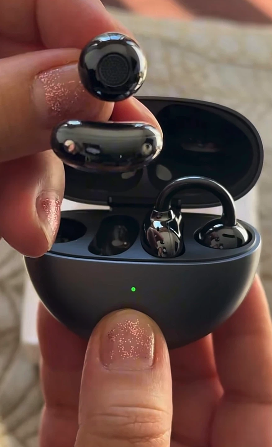 Selling a pair of Huawei FreeClip open-ear headphones in black. They're in excellent condition and come with the original charger! These are super comfortable and have great sound quality, perfect for staying aware of your surroundings while enjoying your music or podcasts